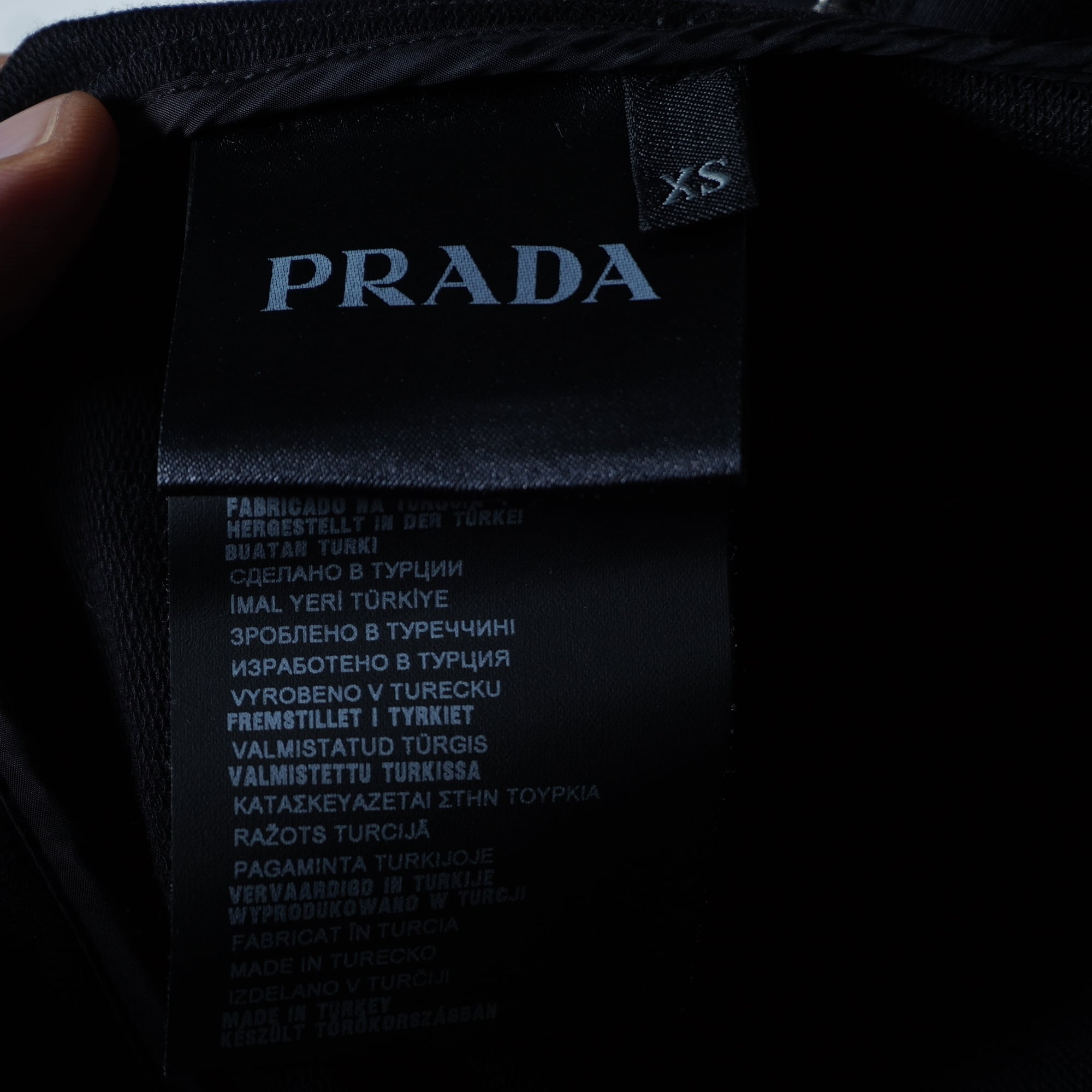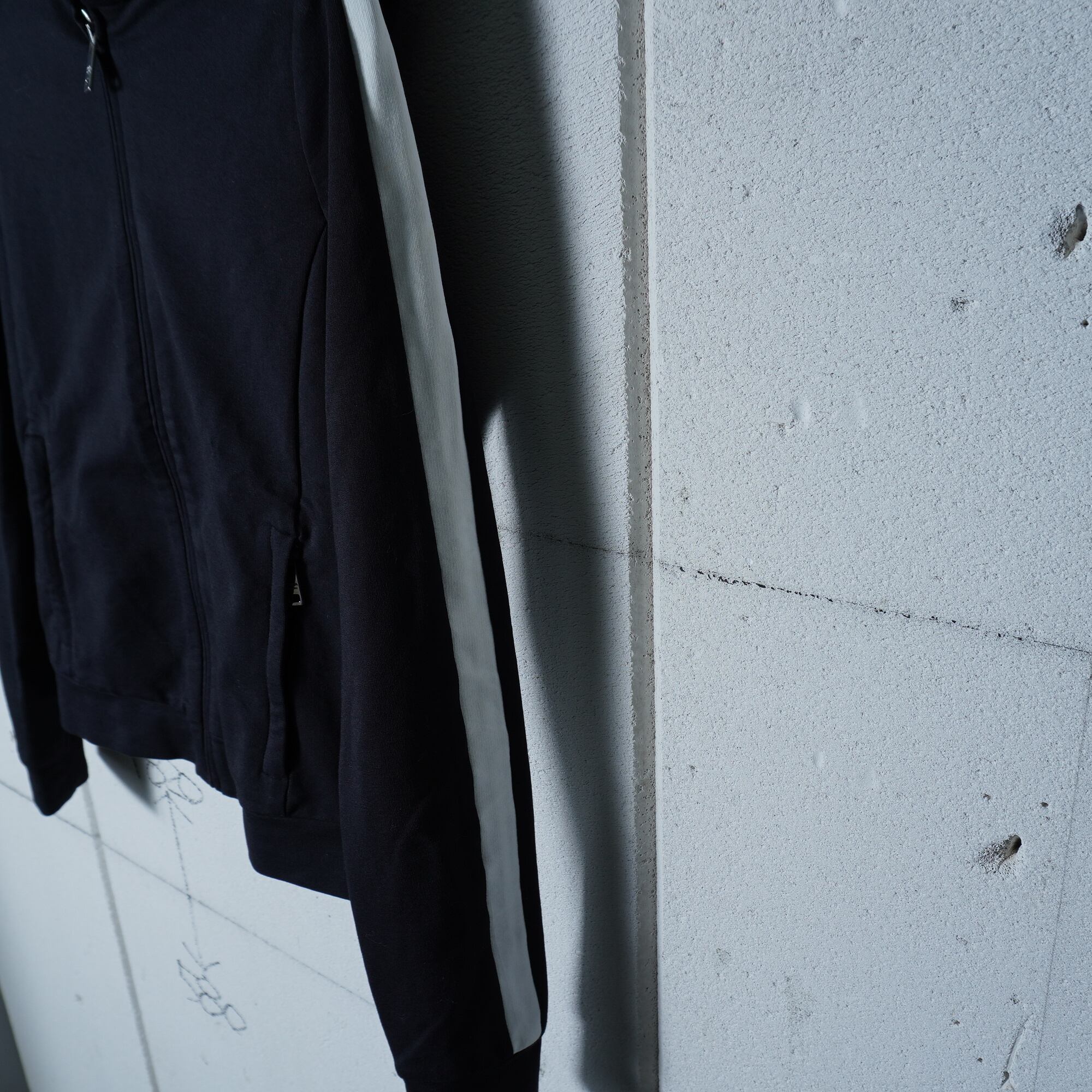 【PRADA】プラダ "ARCHIVE" ロゴ入ホワイトラインフーデッドパーカー black&white