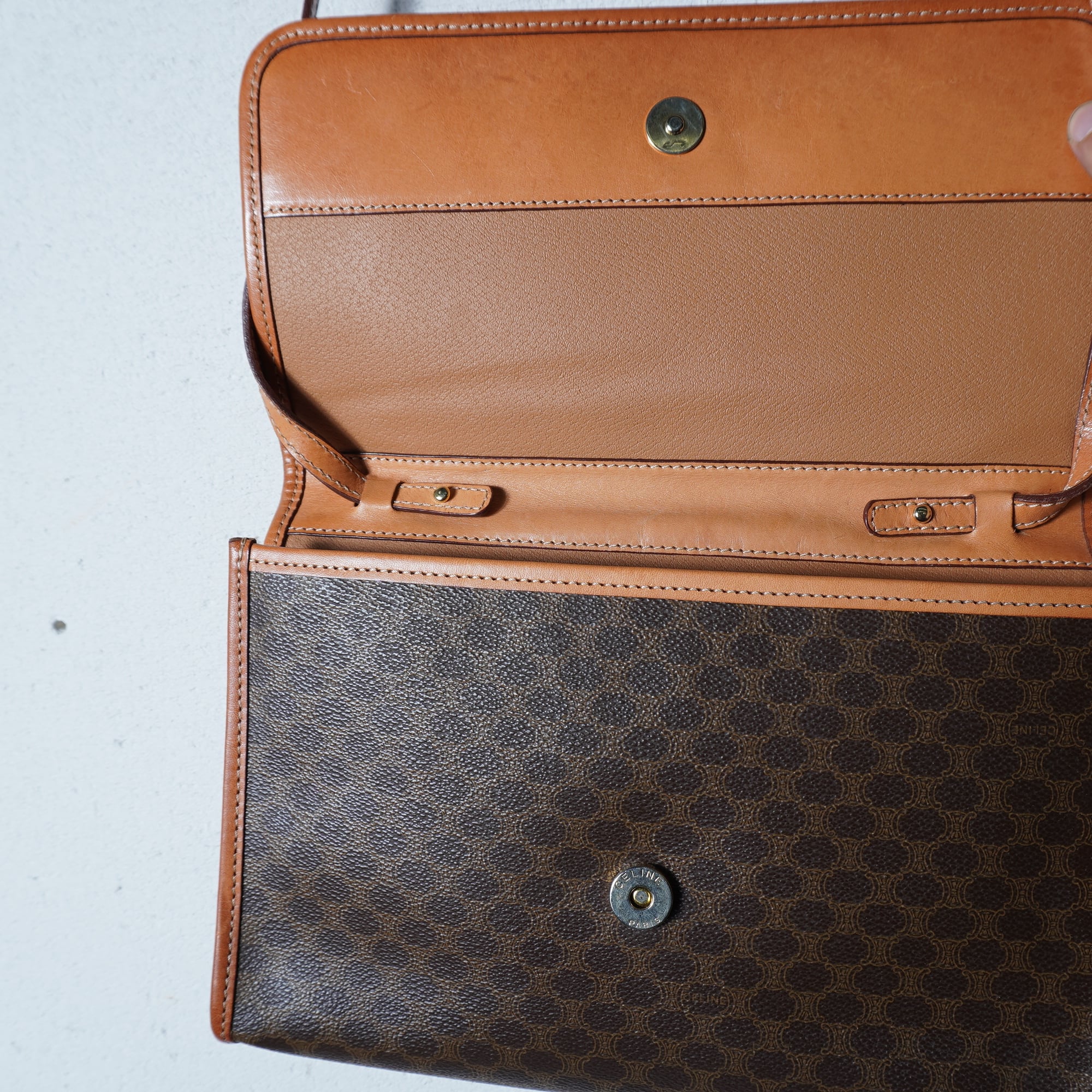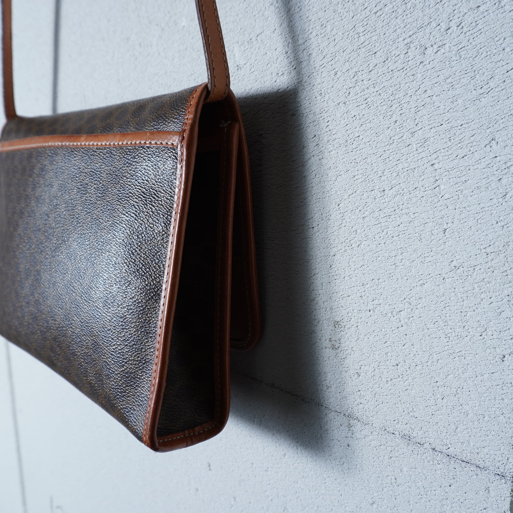 【CELINE】セリーヌ ラインロゴ マカダム柄レザーショルダーバッグ brown