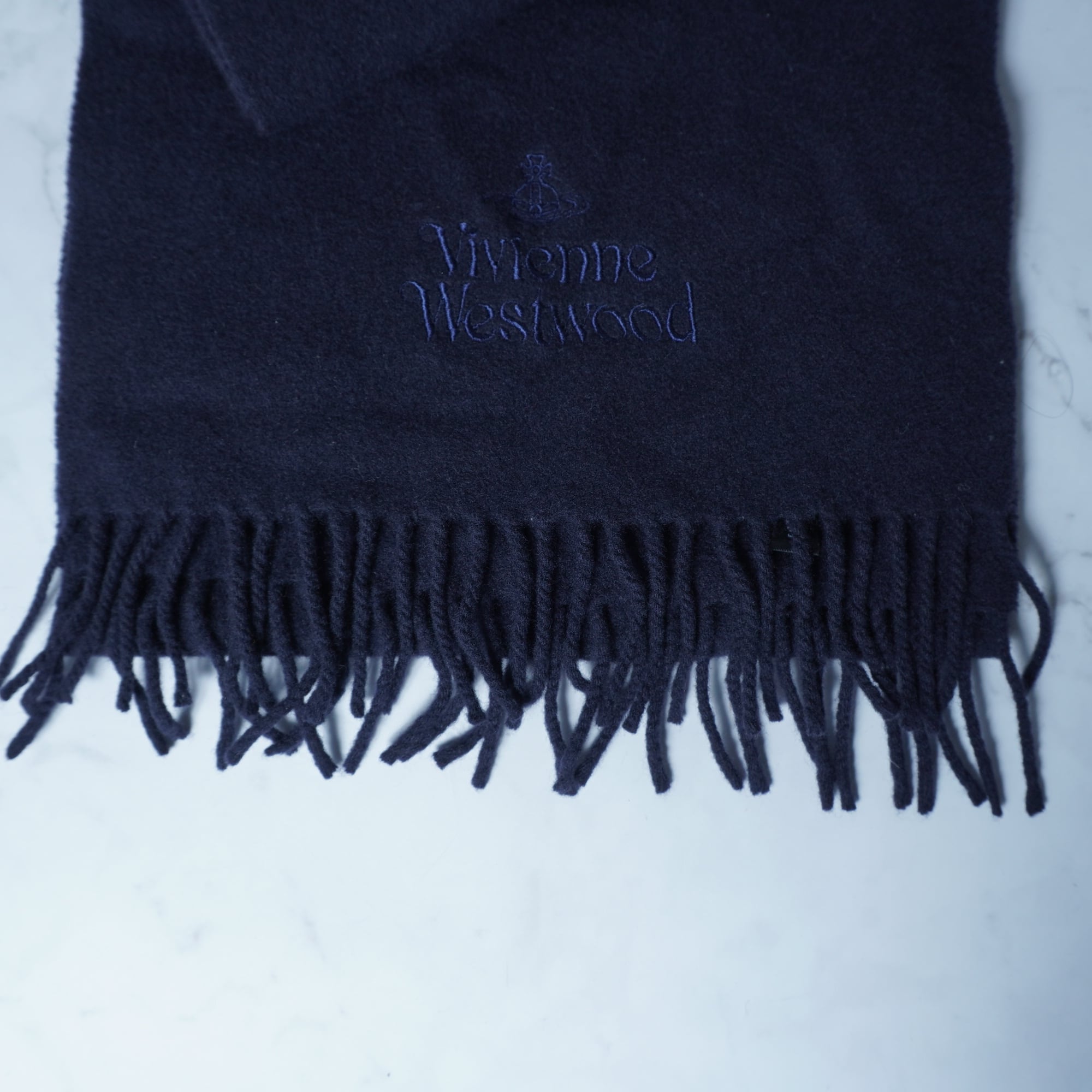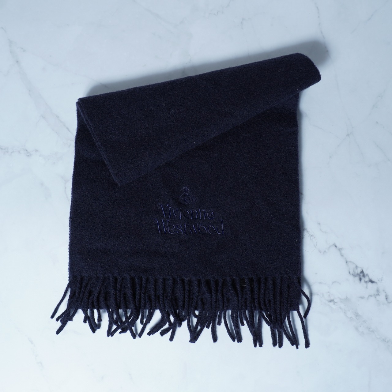 【Vivienne Westwood】ヴィヴィアンウエストウッド ”オーブロゴ刺繍”WOOL100%マフラー black