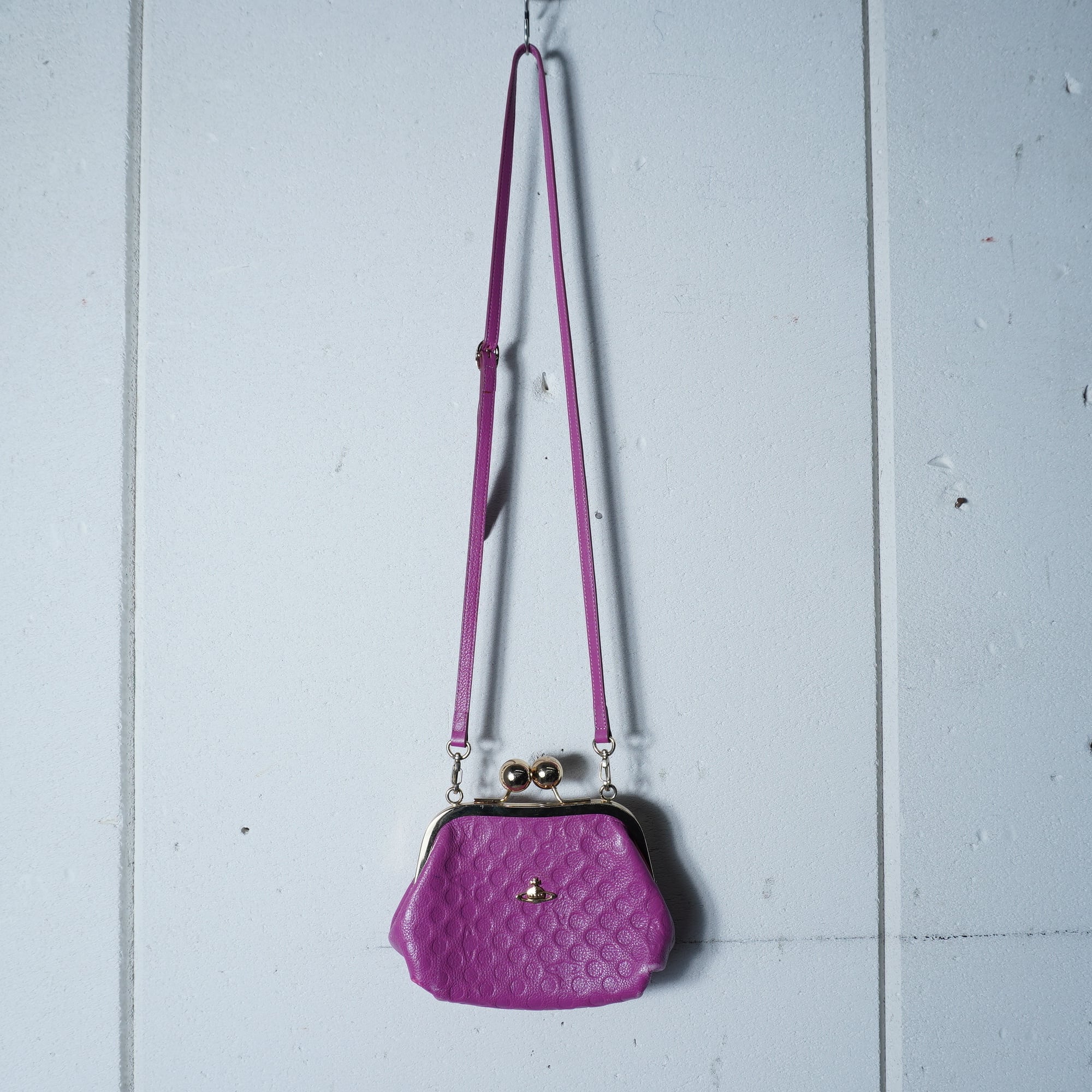 【Vivienne Westwood】ヴィヴィアンウエストウッド ”オーブロゴ”がま口型押しリアルレザーショルダーバッグ magenta