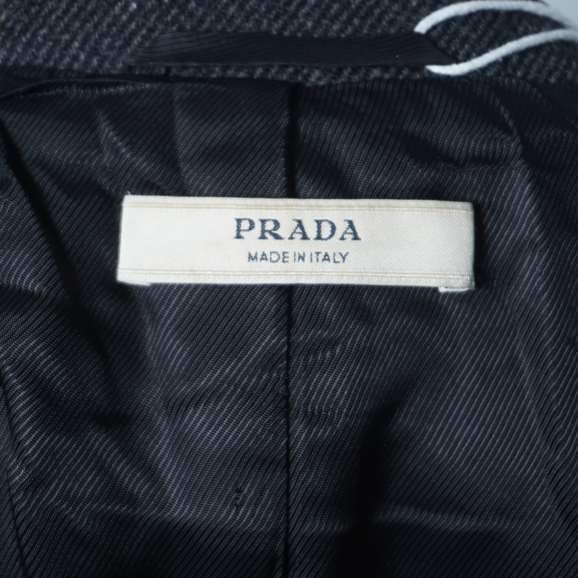 【PRADA】プラダ ウールヘリンボーンレザー切替スリムコート charcoal