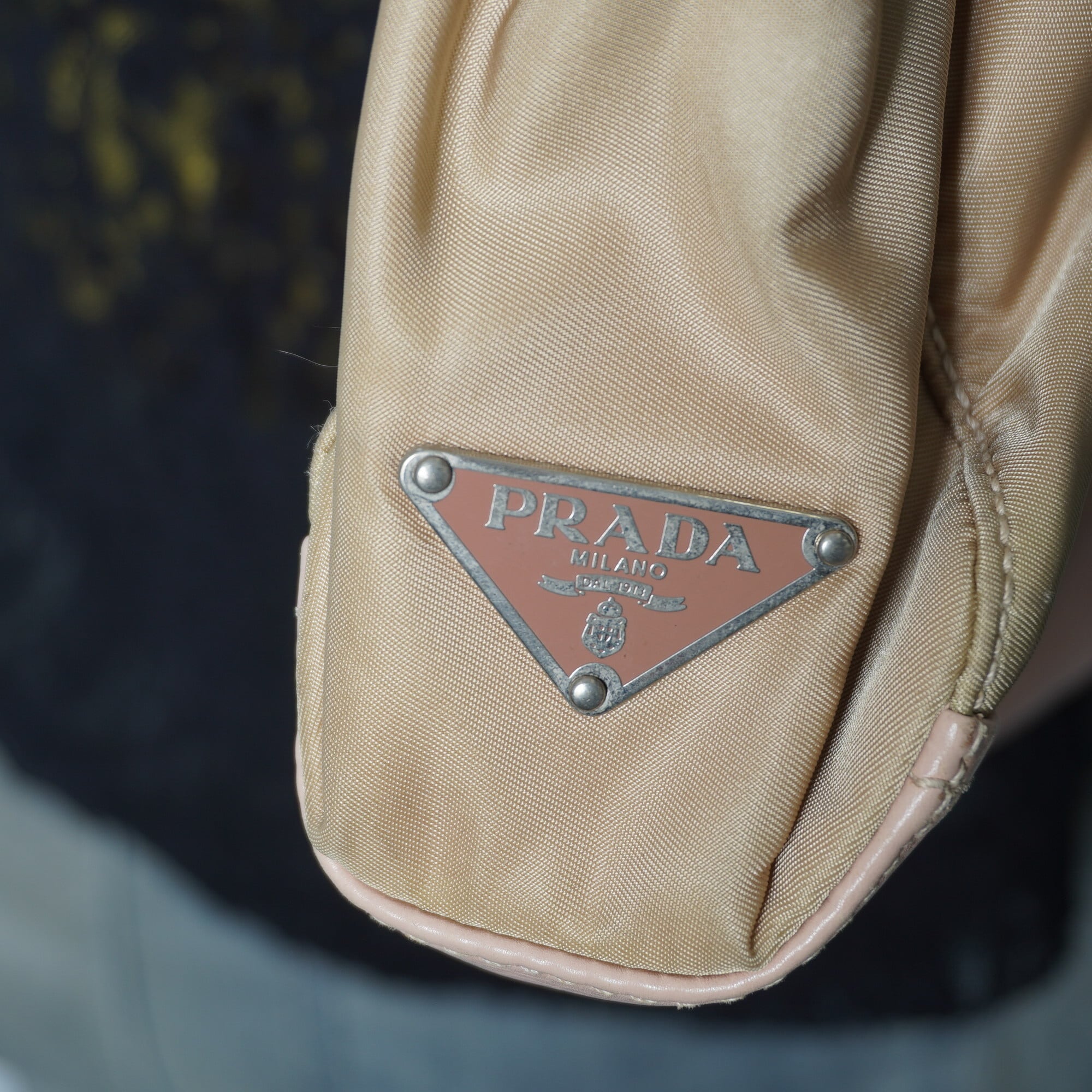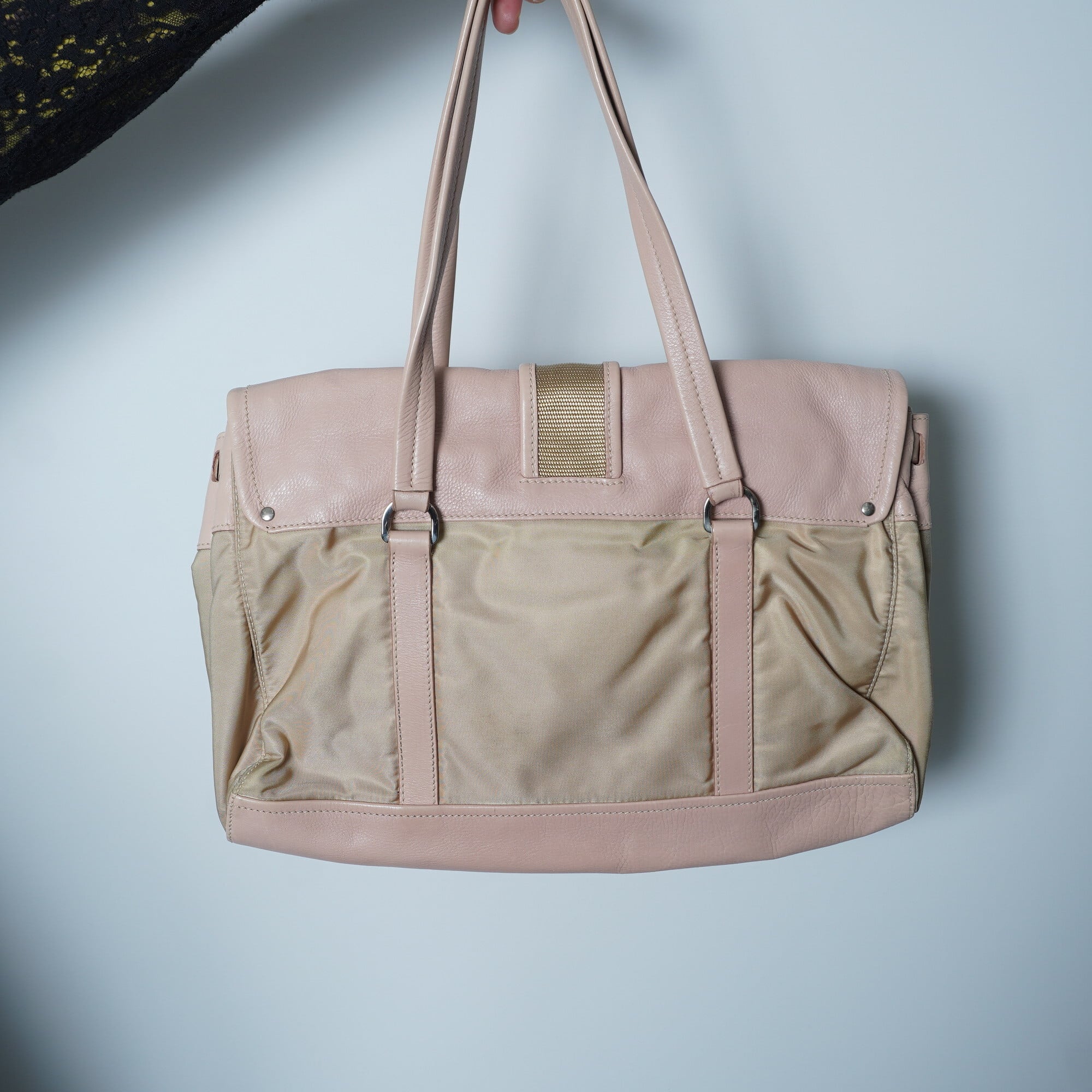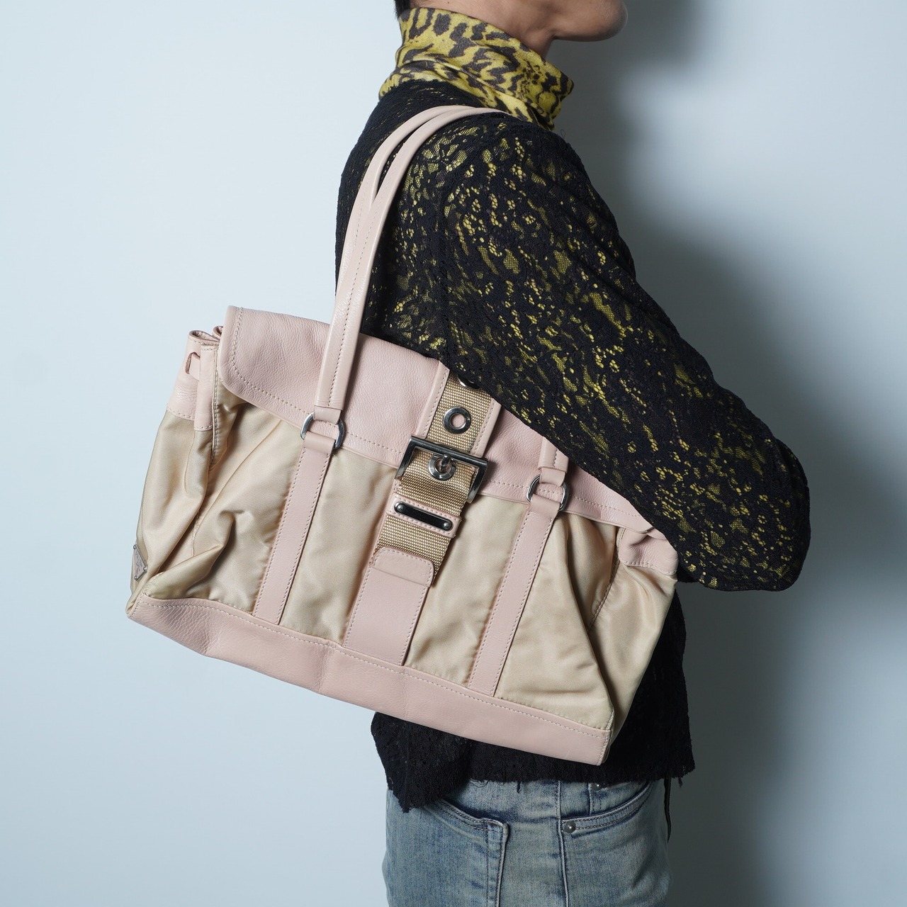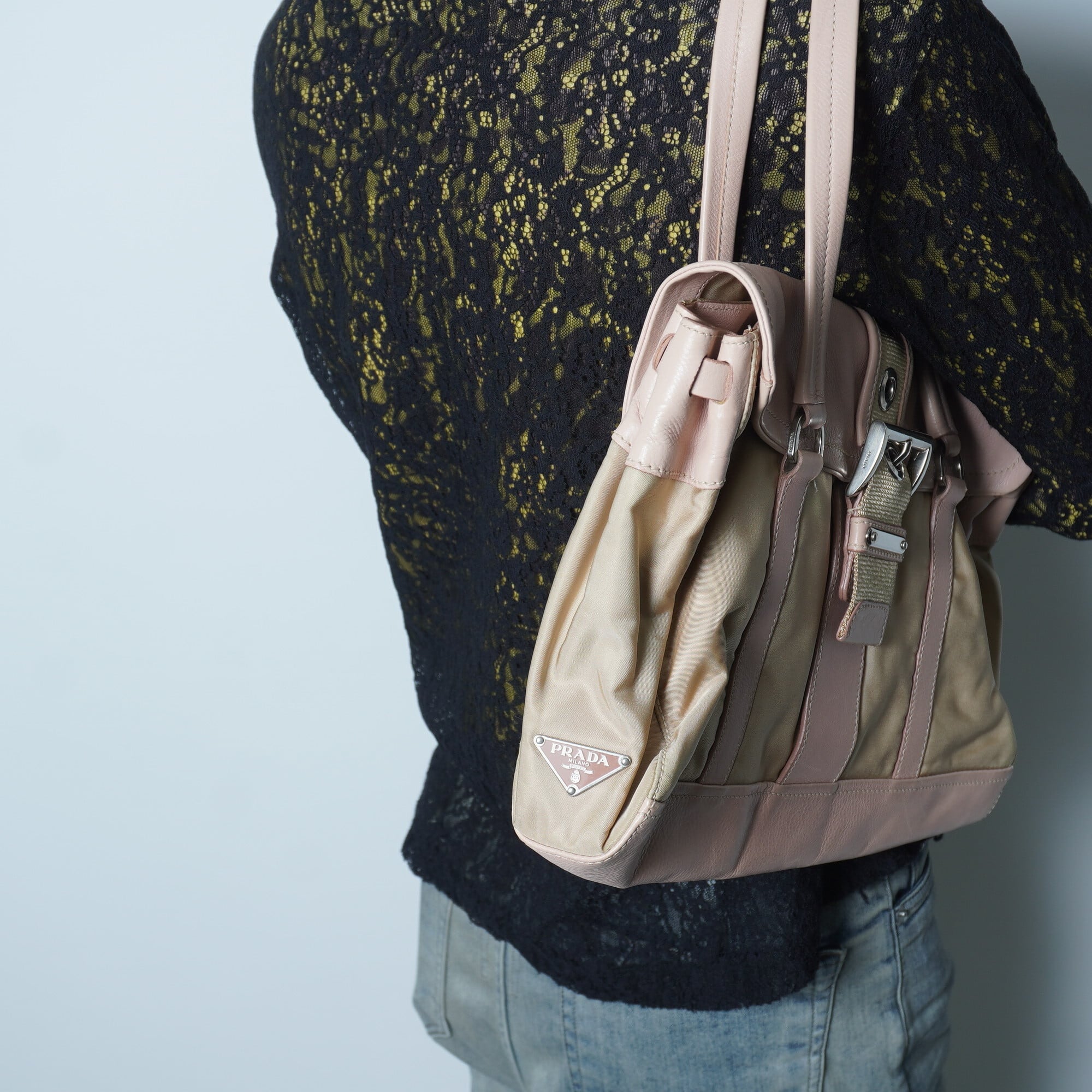 【PRADA】プラダ ナイロン×レザー ホーボーショルダーバッグ pink beige