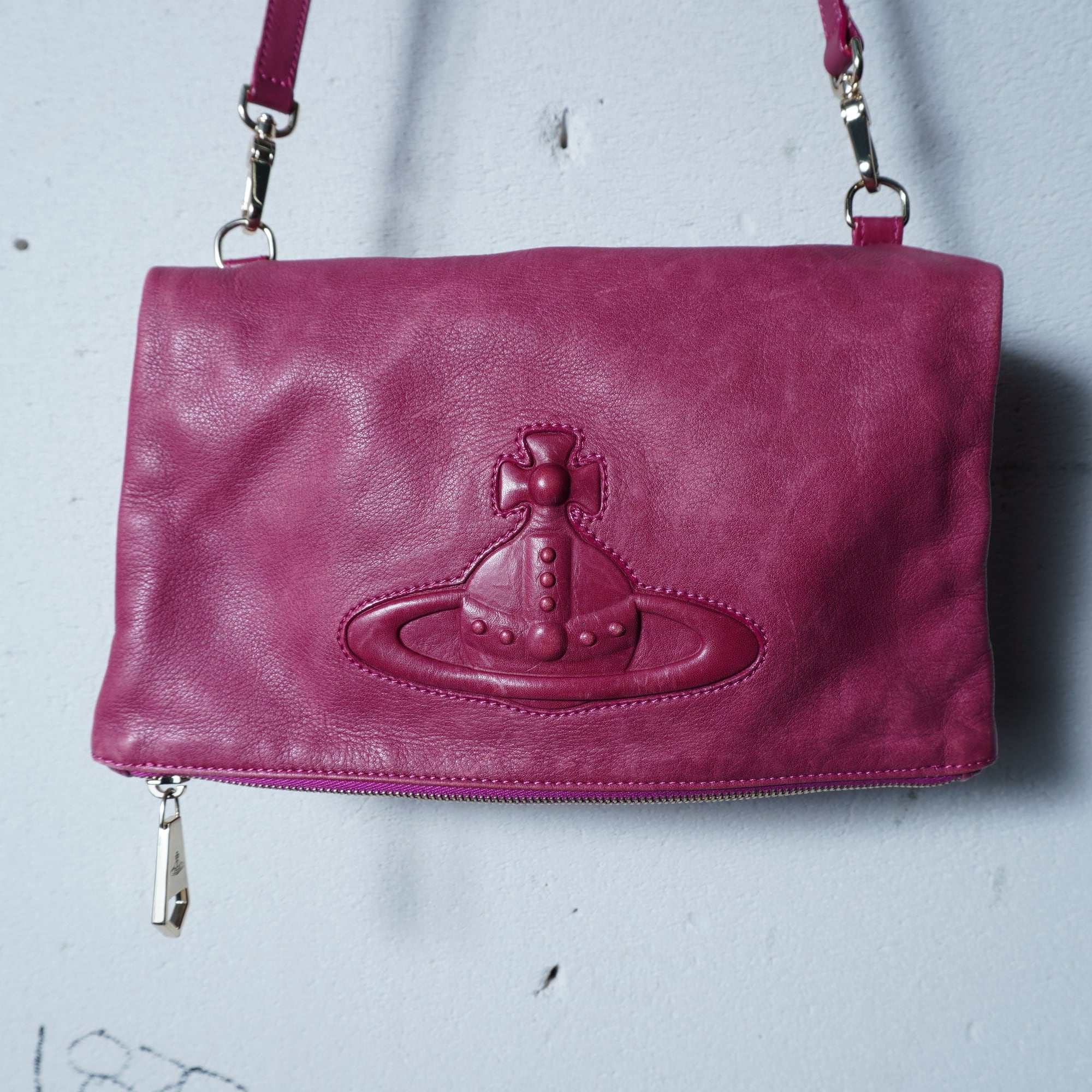 【Vivienne Westwood】ヴィヴィアンウエストウッド エンボスオーブロゴリアルレザーショルダーバッグ burgundy