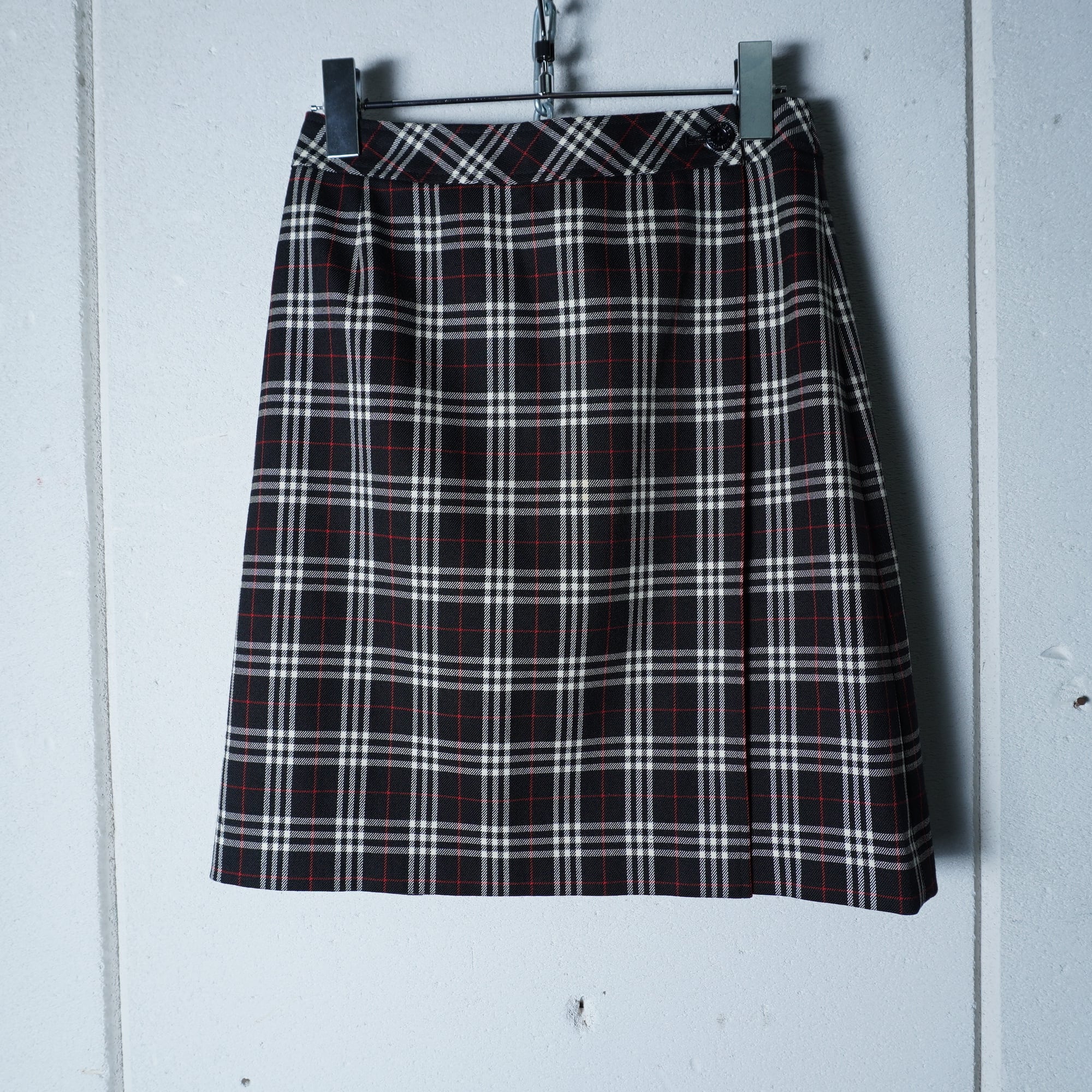 【BURBERRY】バーバリー ウールチェック巻きスカート black&white&red