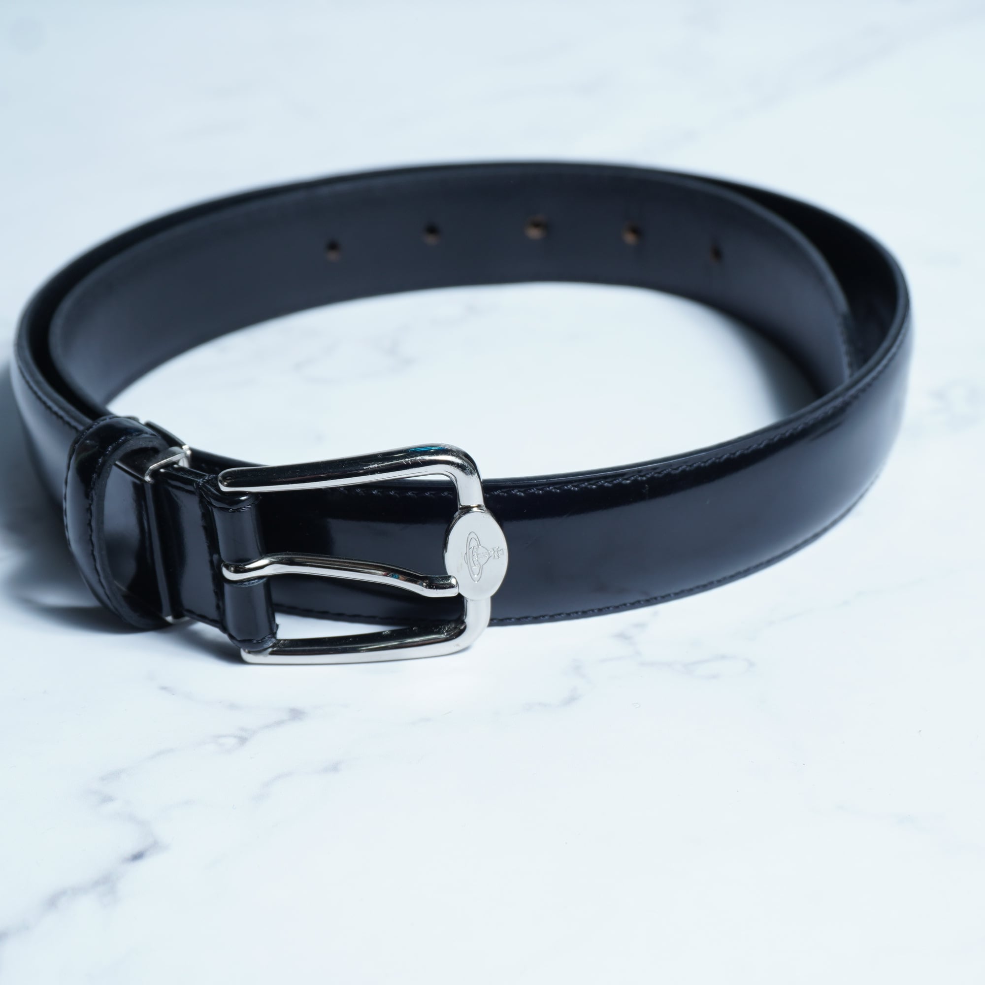 【Vivienne Westwood】ヴィヴィアンウエストウッド "オーブロゴ" シルバーバックル光沢レザーベルト black