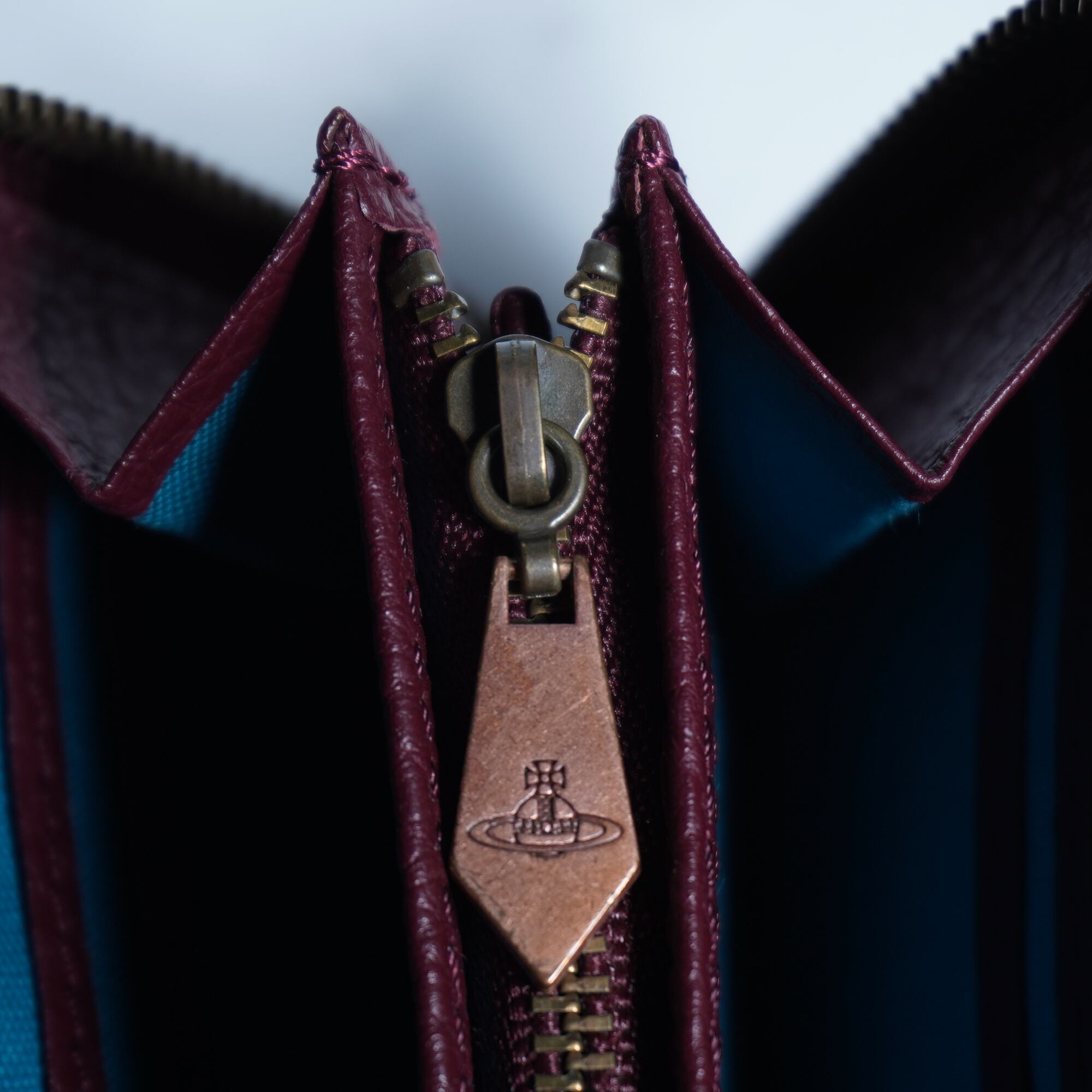 【Vivienne Westwood】ヴィヴィアンウエストウッド "オーブロゴ" レザー切替ツイード ロングウォレット brown&blue