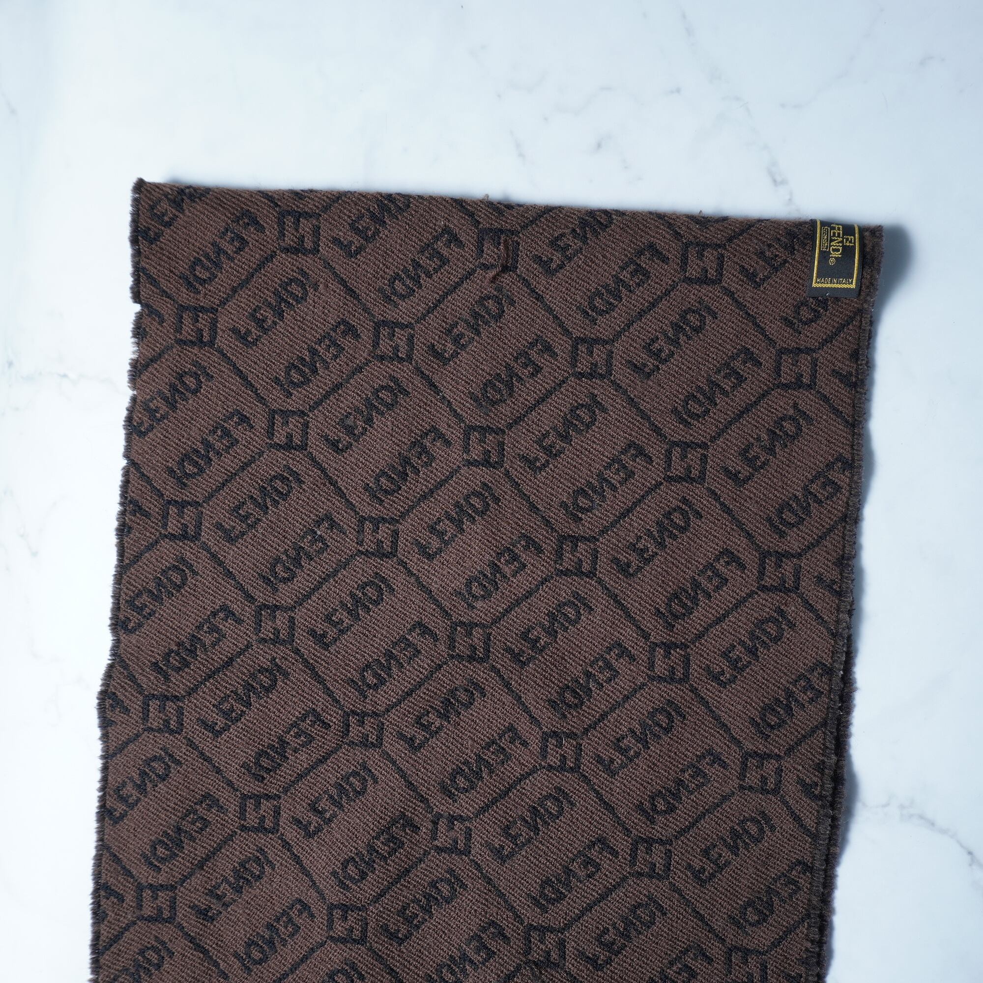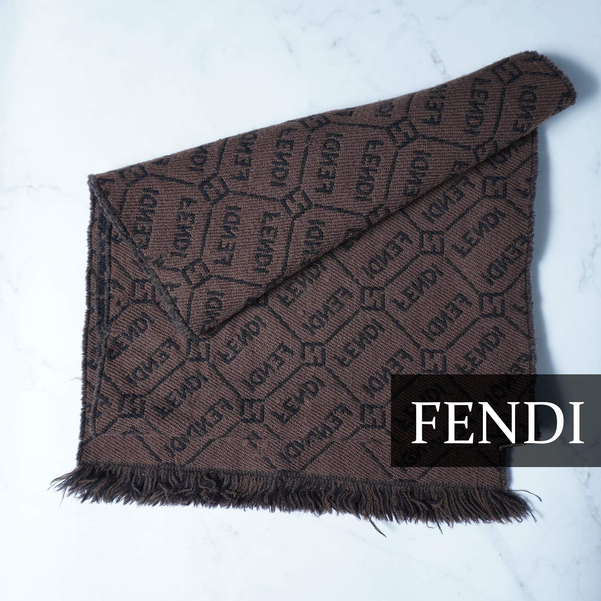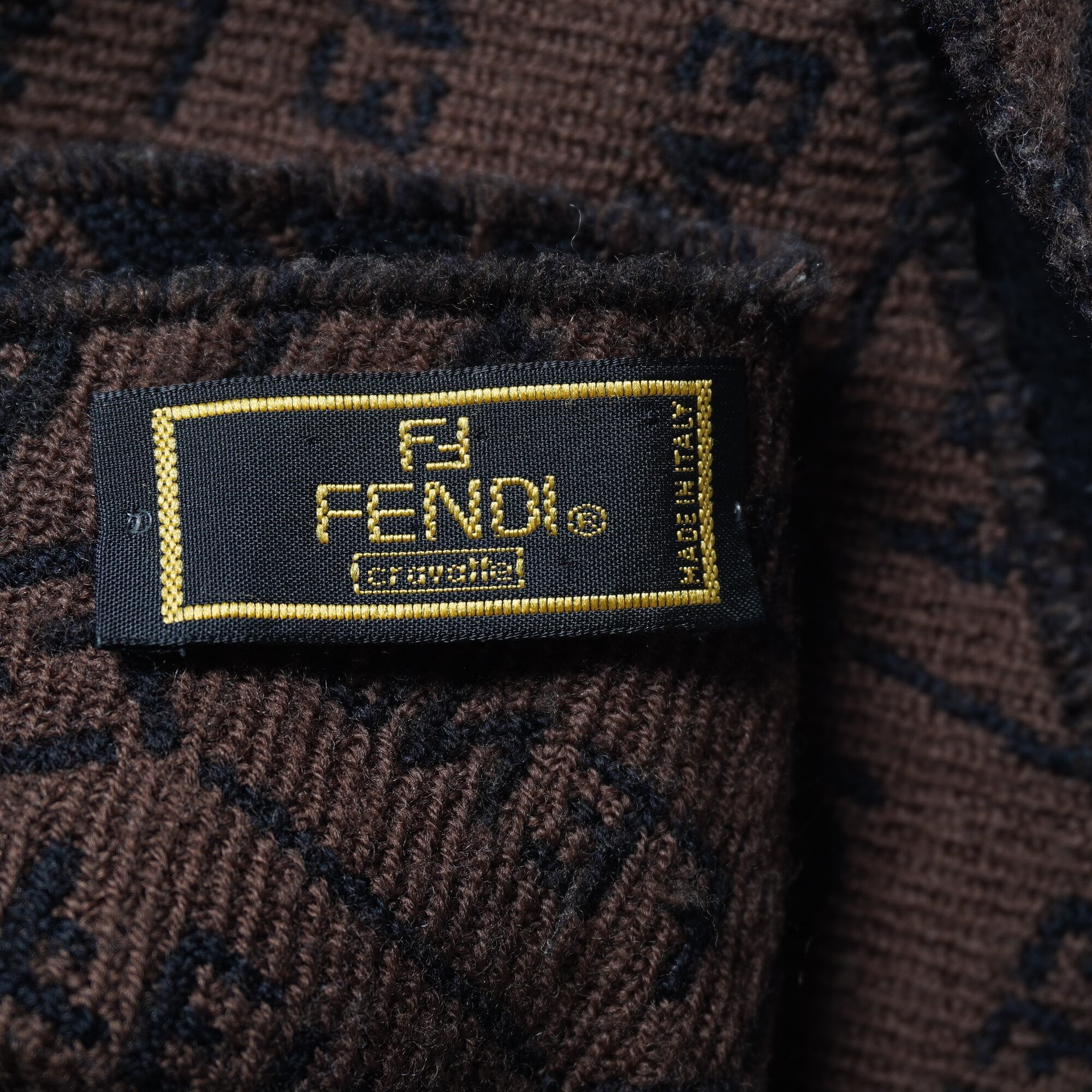 【FENDI】フェンディ "ズッカ・ロゴ総柄" フリンジマフラー black&brown