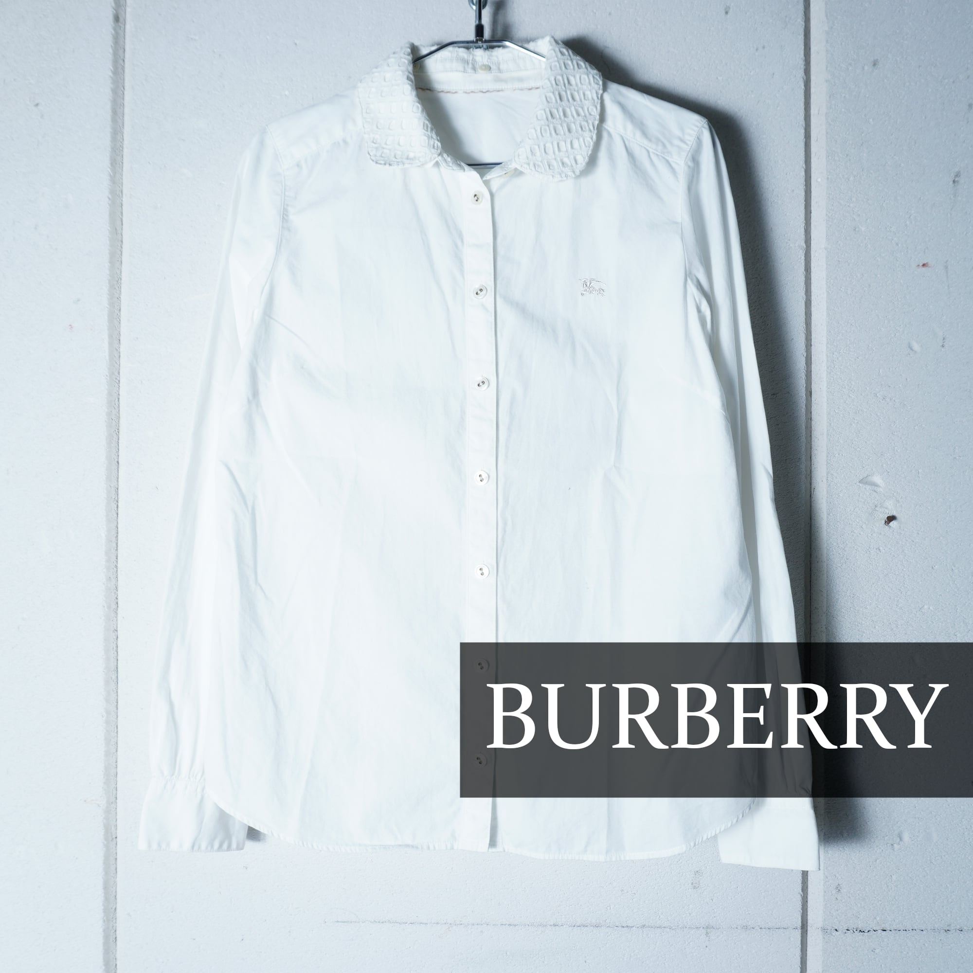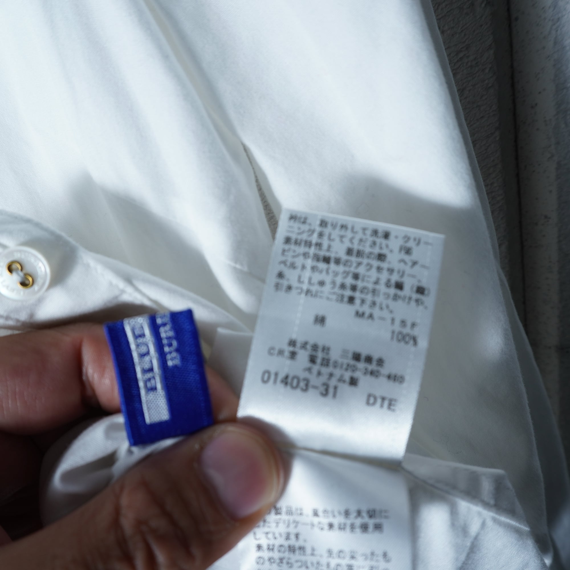 【BURBERRY】バーバリー ”ホースロゴ刺繍” 着脱式切替カラーコットンシャツ white