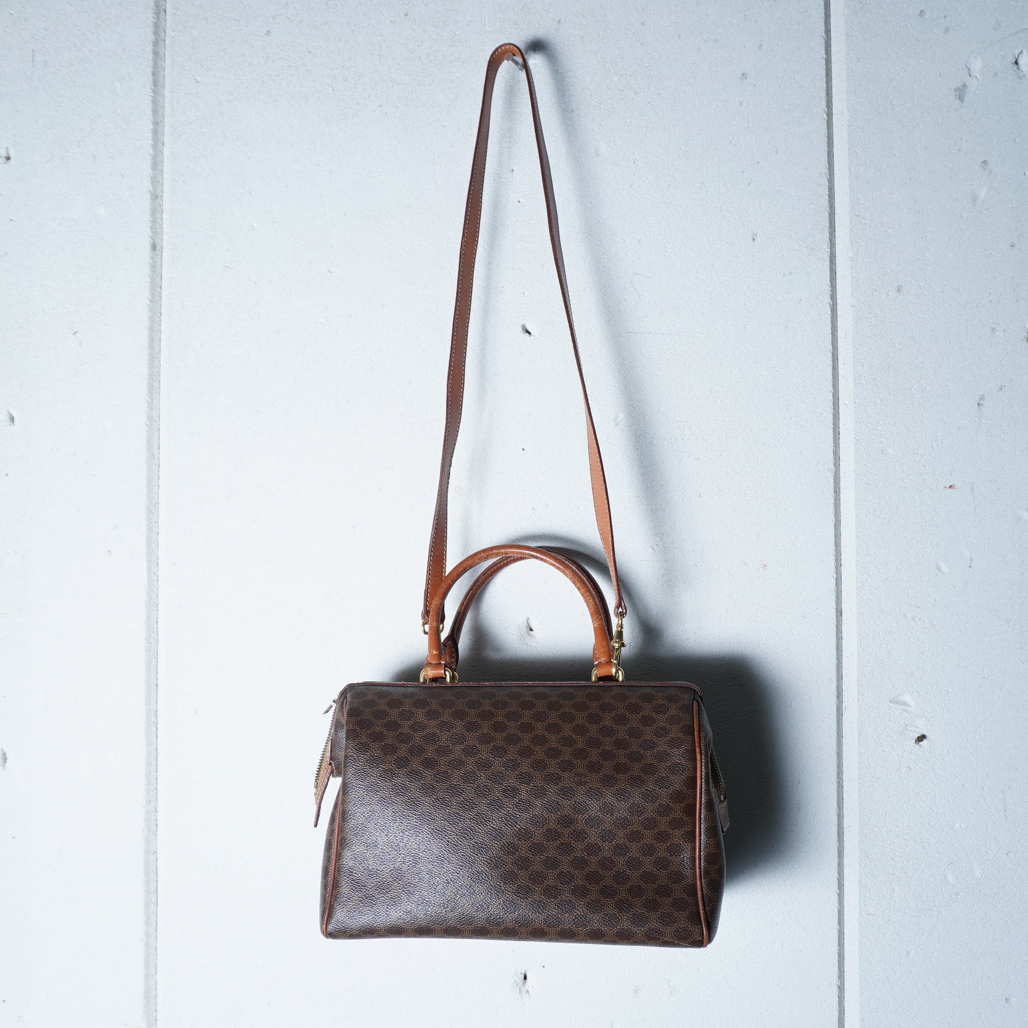 【CELINE】セリーヌ ”マカダム柄” 2WAYボストンレザーショルダーバッグ brown