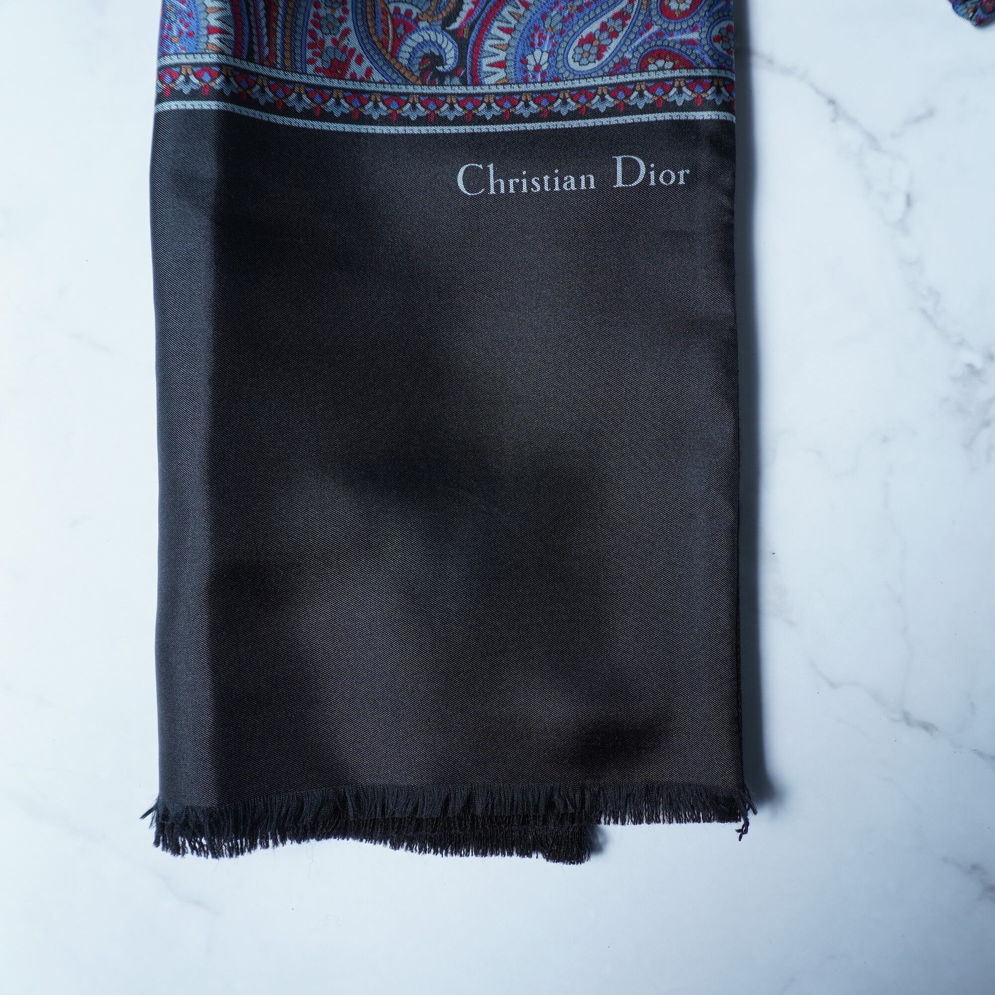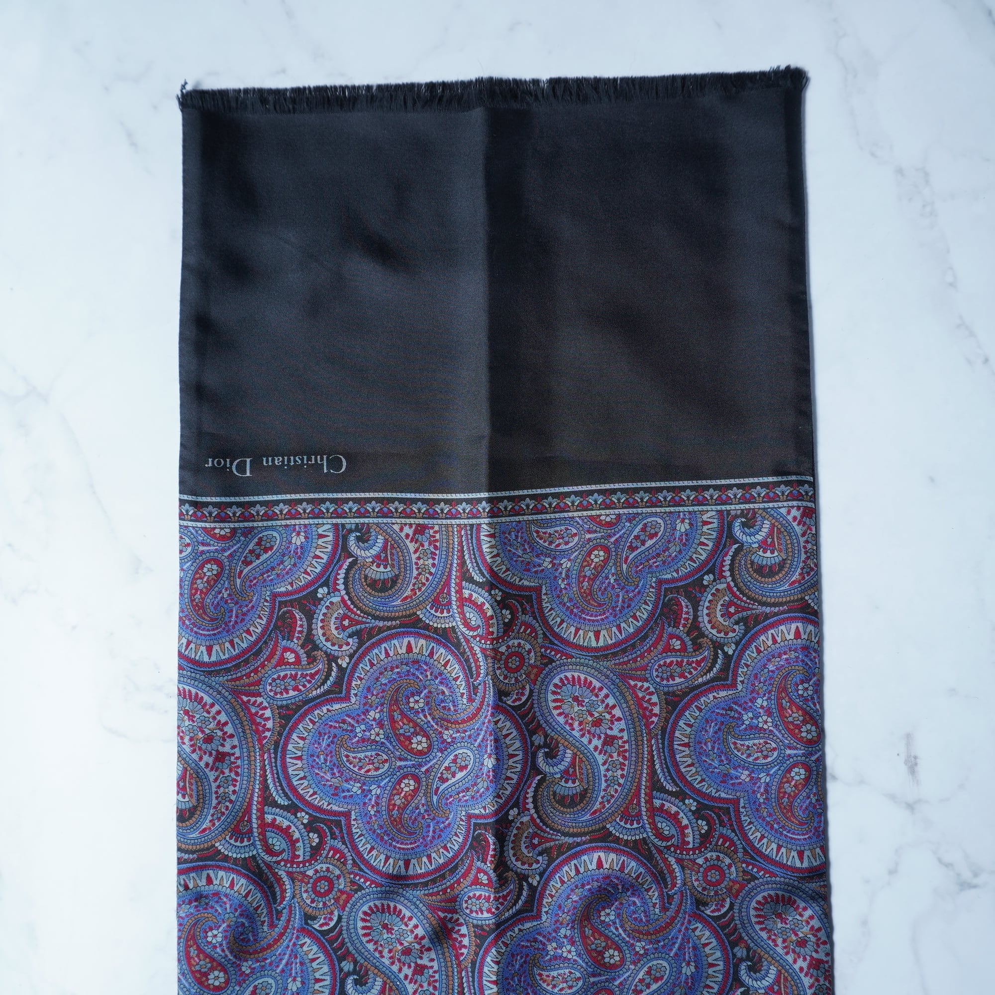 【Christian Dior】クリスチャンディオール "ロゴ入” ペイズリー柄シルク・ウールリバーシブルマフラー red&purple&black