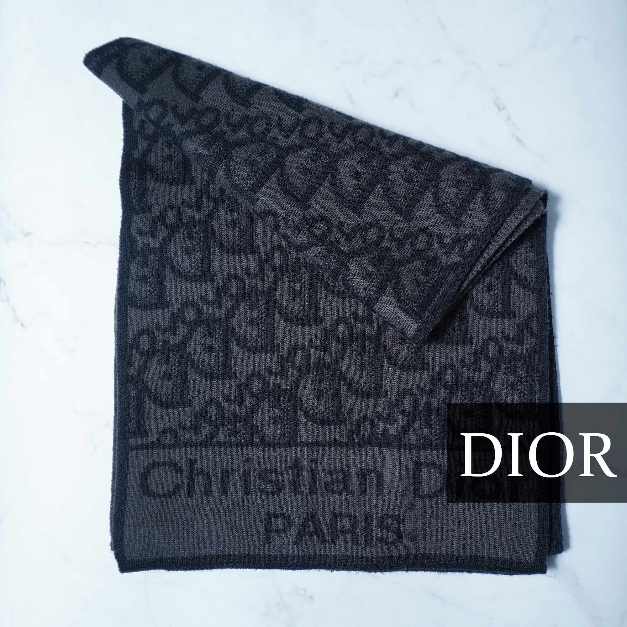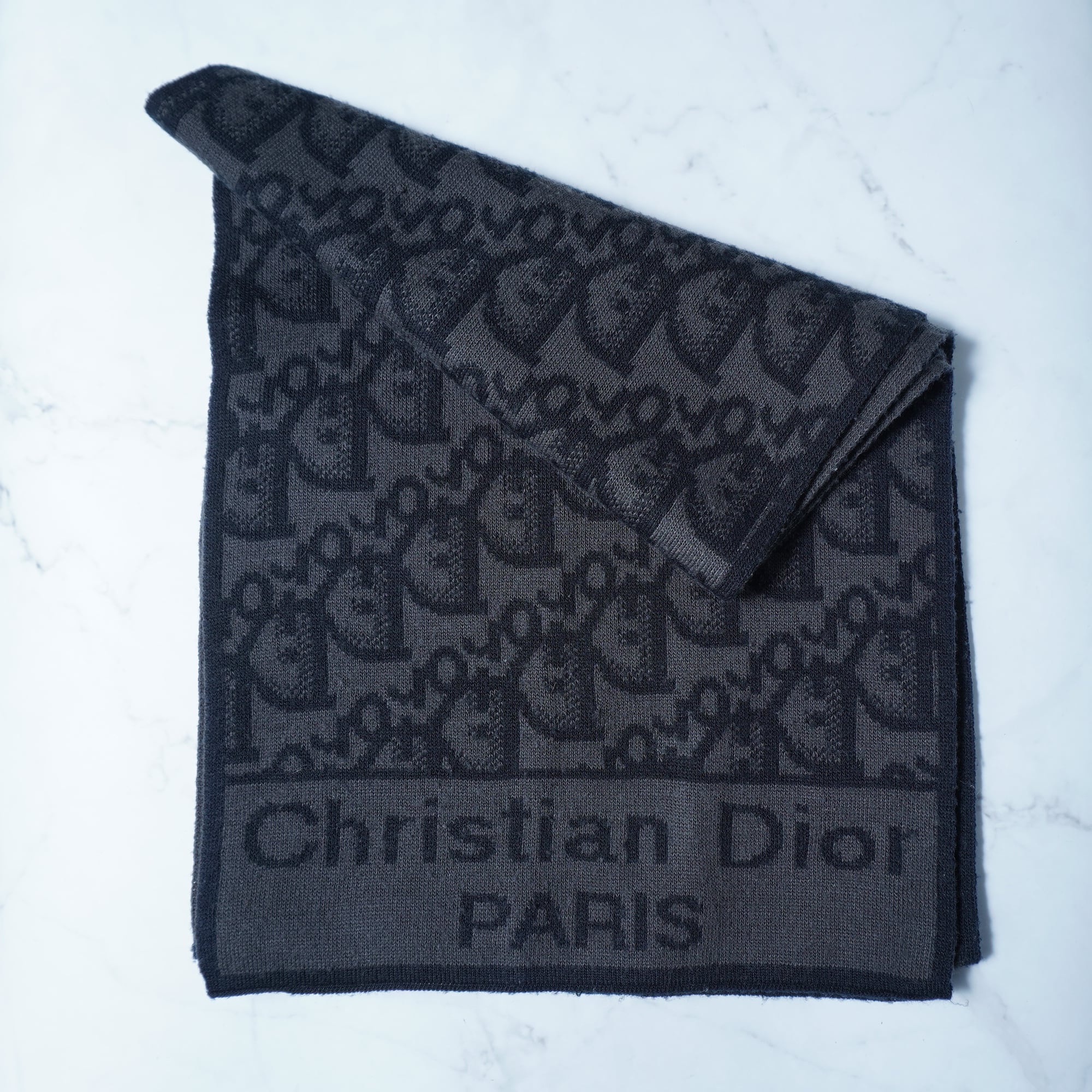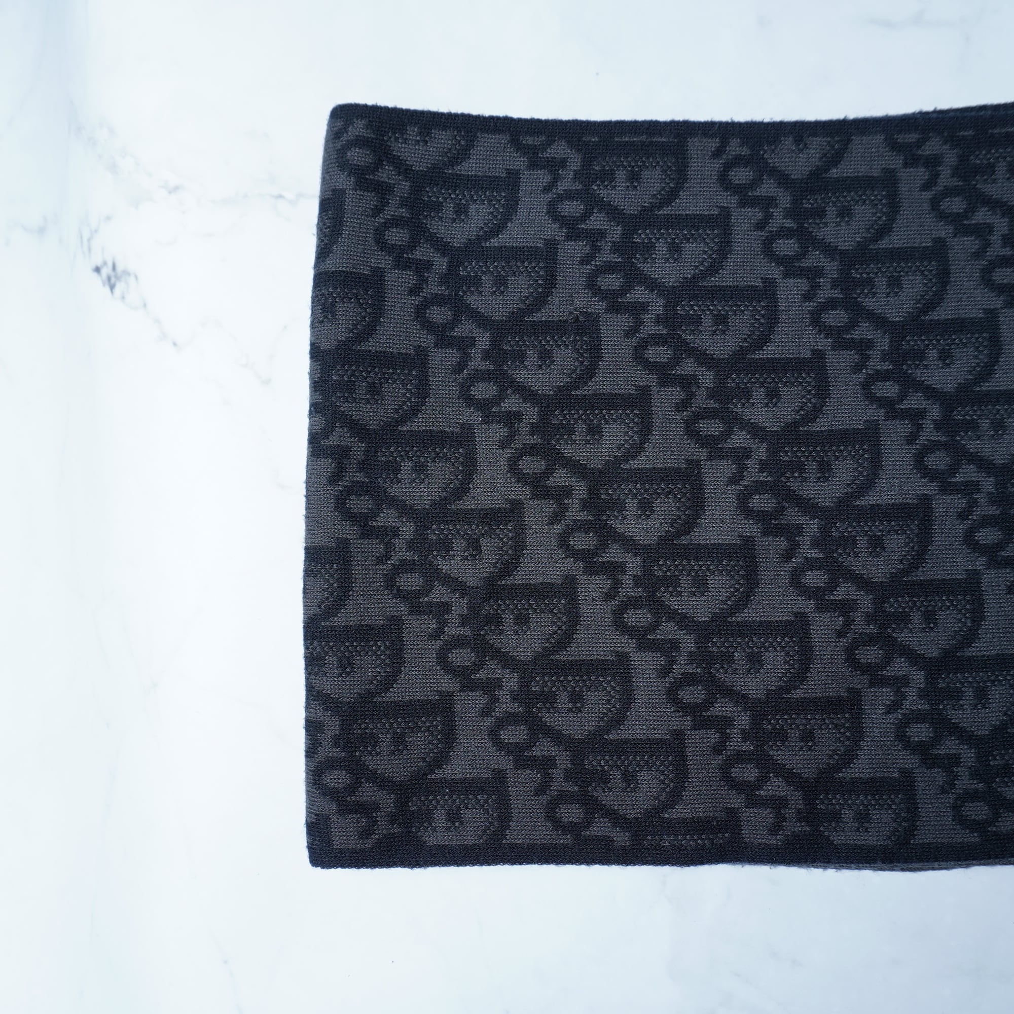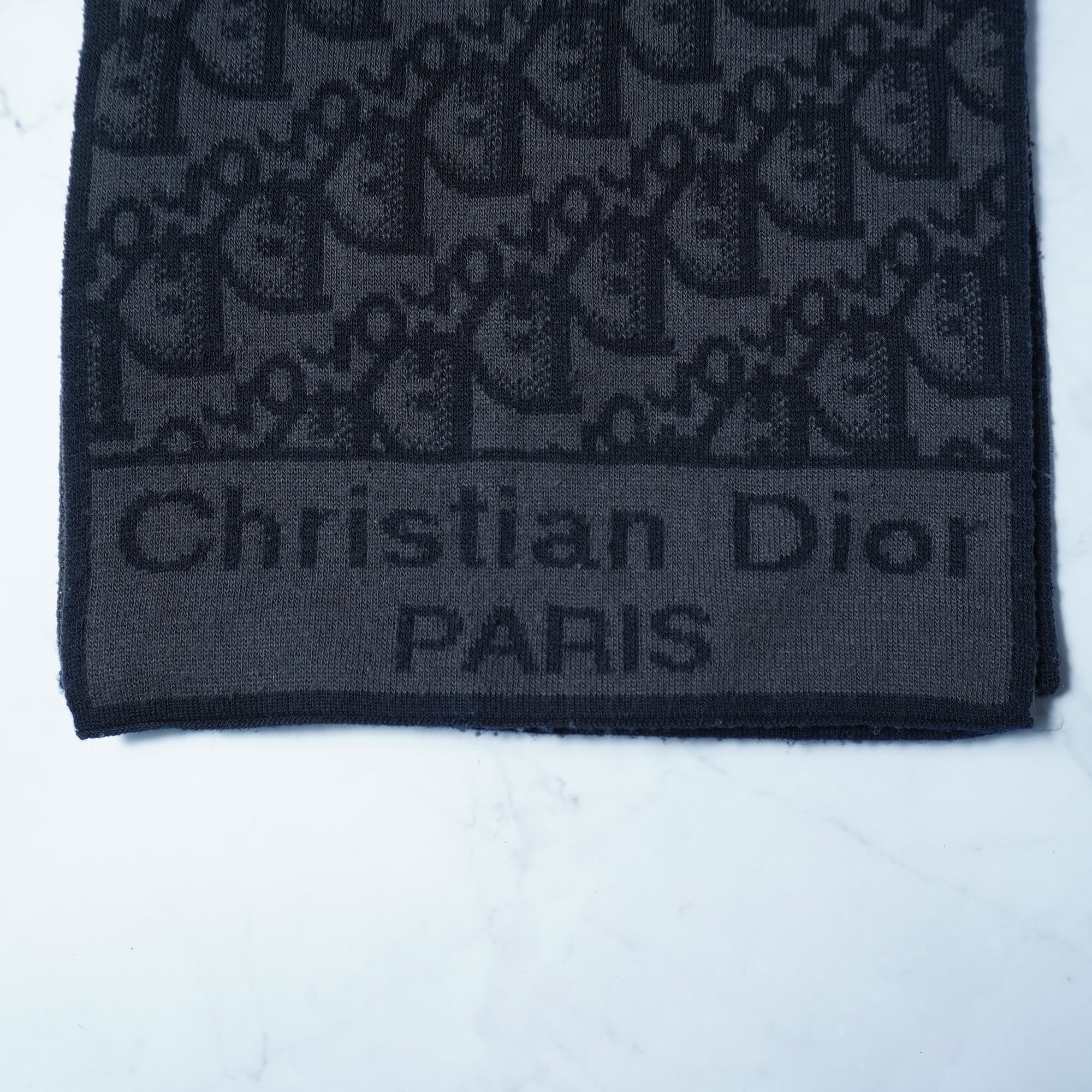 【Christian Dior】クリスチャンディオール "トロッター総柄” ウールマフラー black&gray