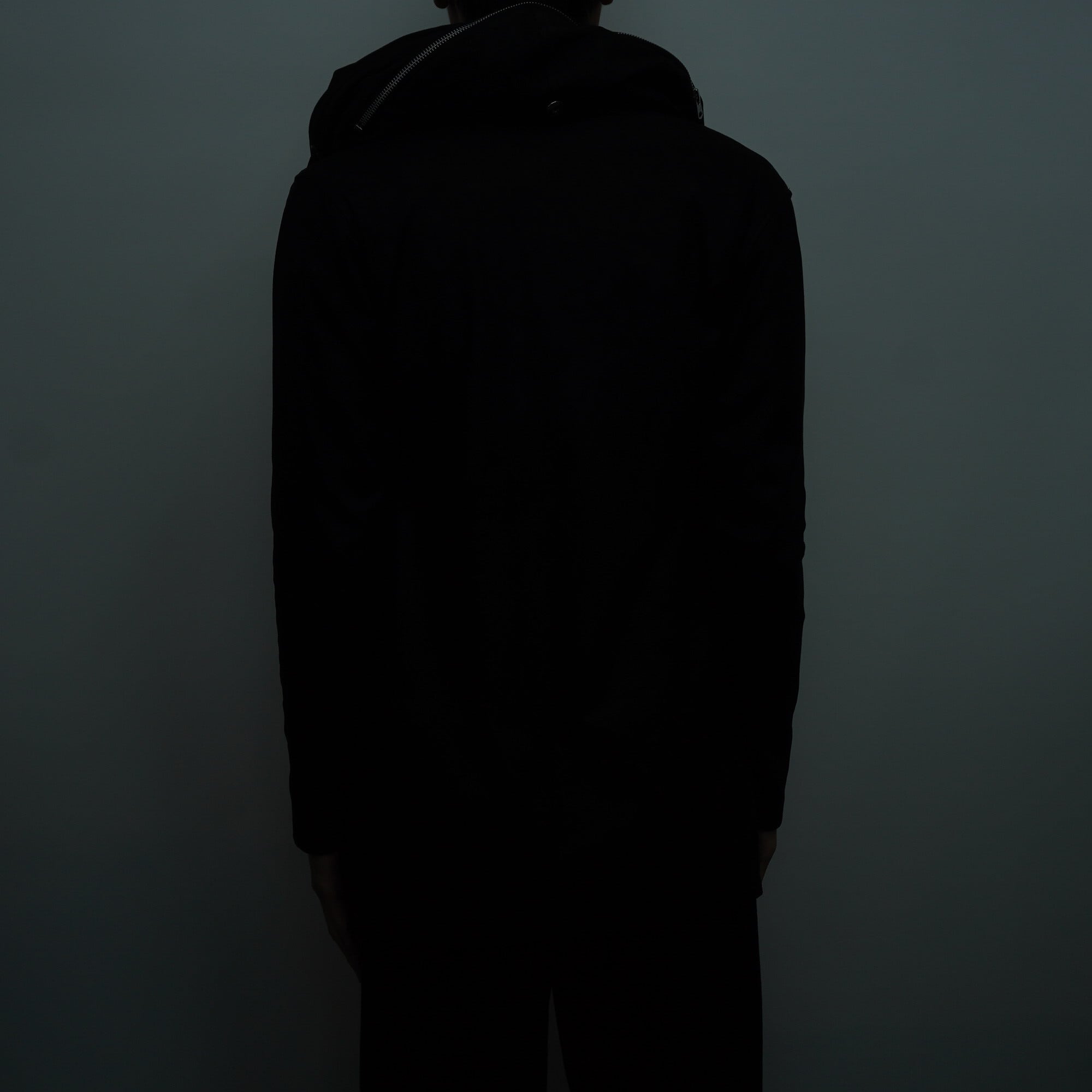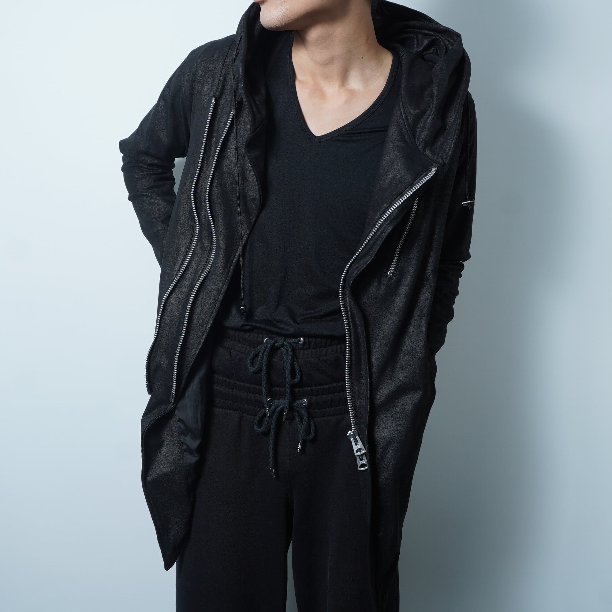 【CIVARIZE】シヴァ―ライズ 美光沢ポリスウェードジップアップロングパーカー black