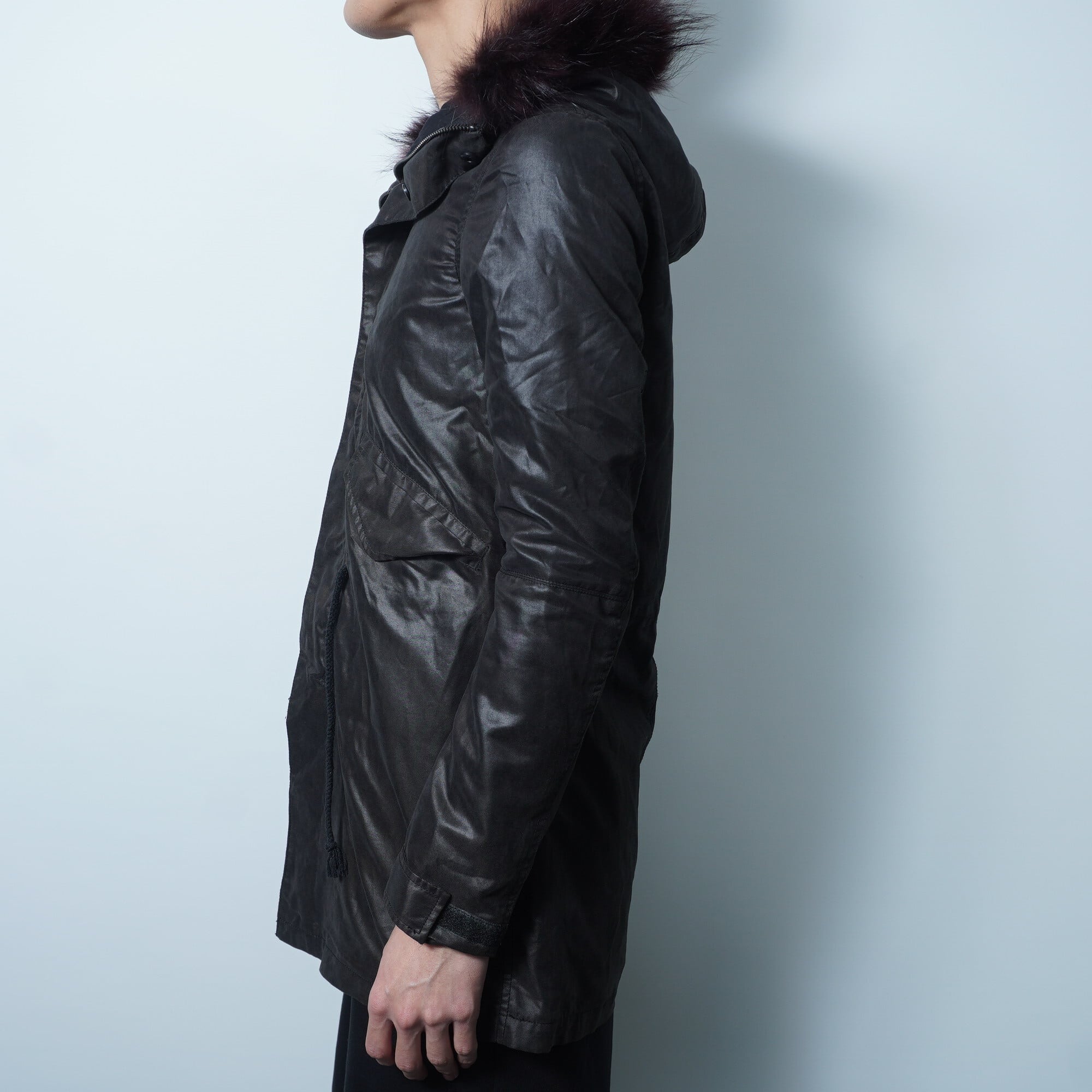【VANQUISH】ヴァンキッシュ 00s Y2K ラクーンファー付きスリムコート black