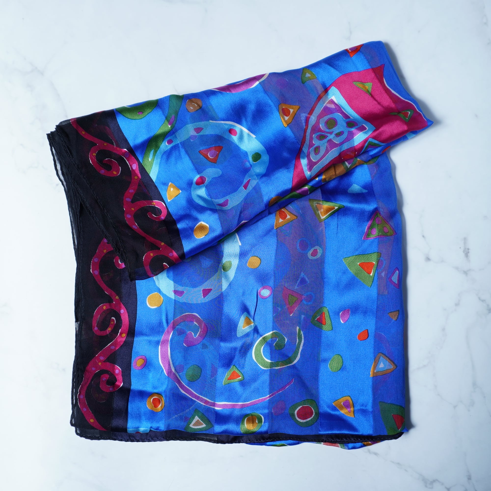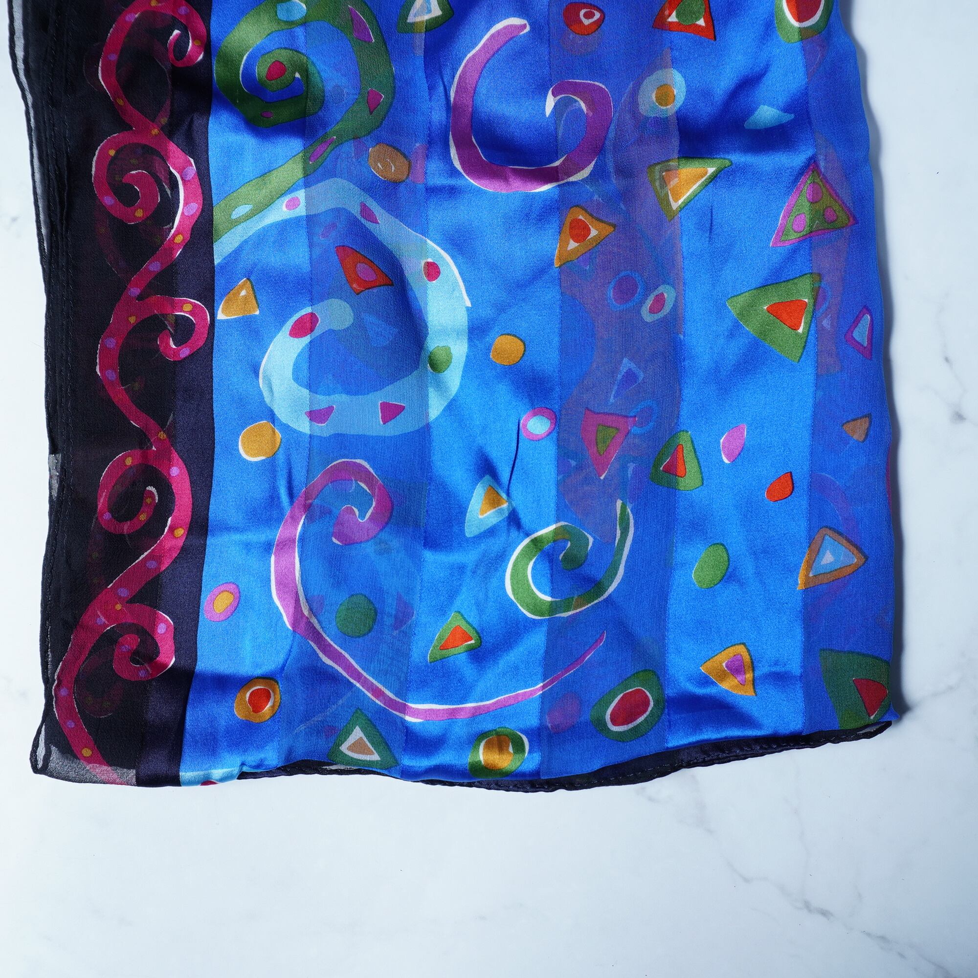 【Yves Saint Laurent】イヴサンローラン ”SILK100%”大判スカーフ blue & black & red