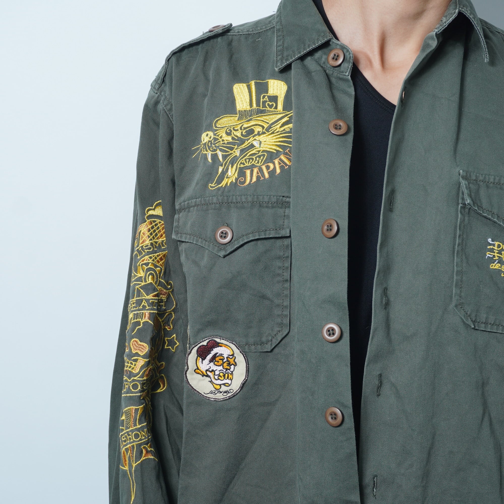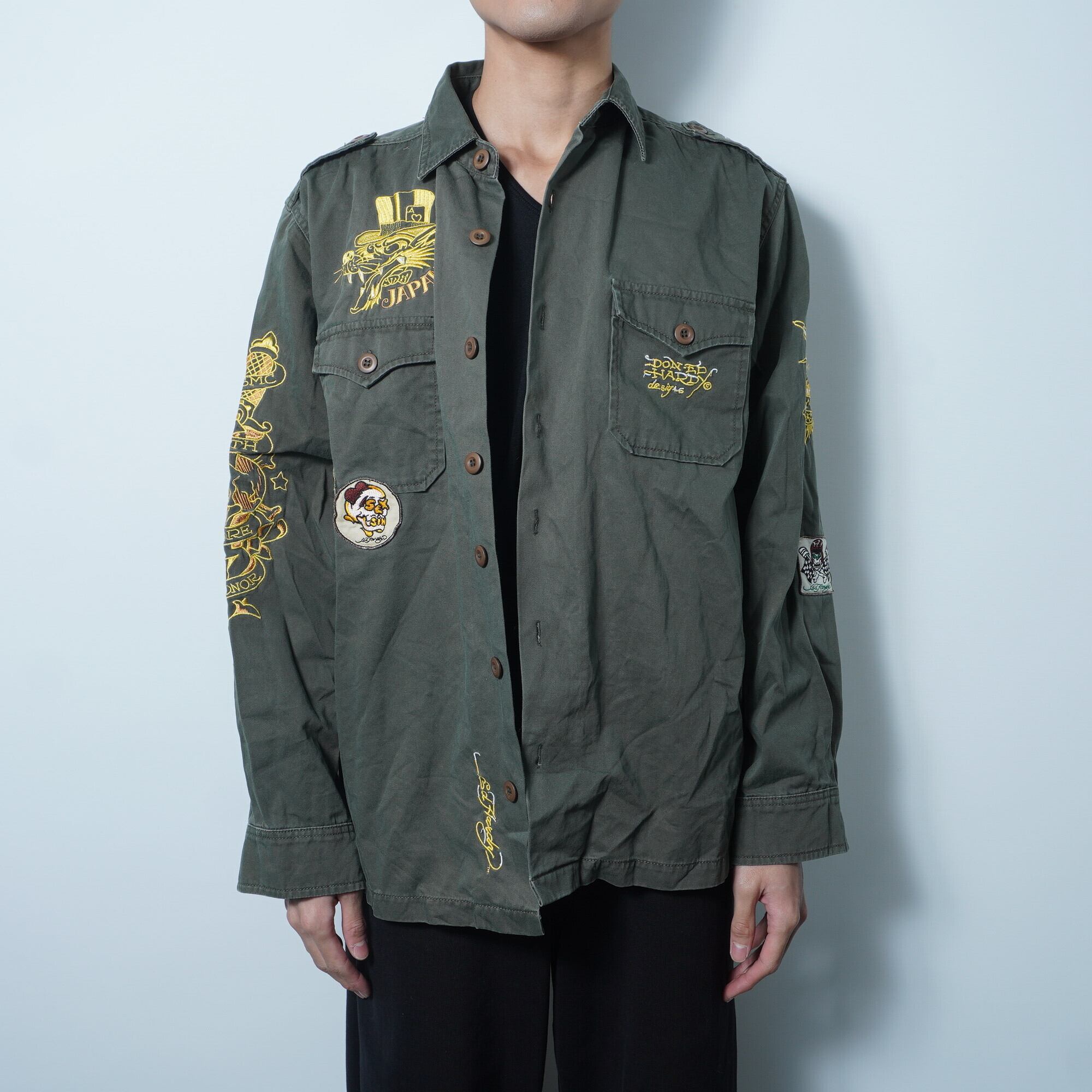 【Ed Hardy】エドハーディー JAPAN×U.S.A. 刺繍ワークジャケット khaki