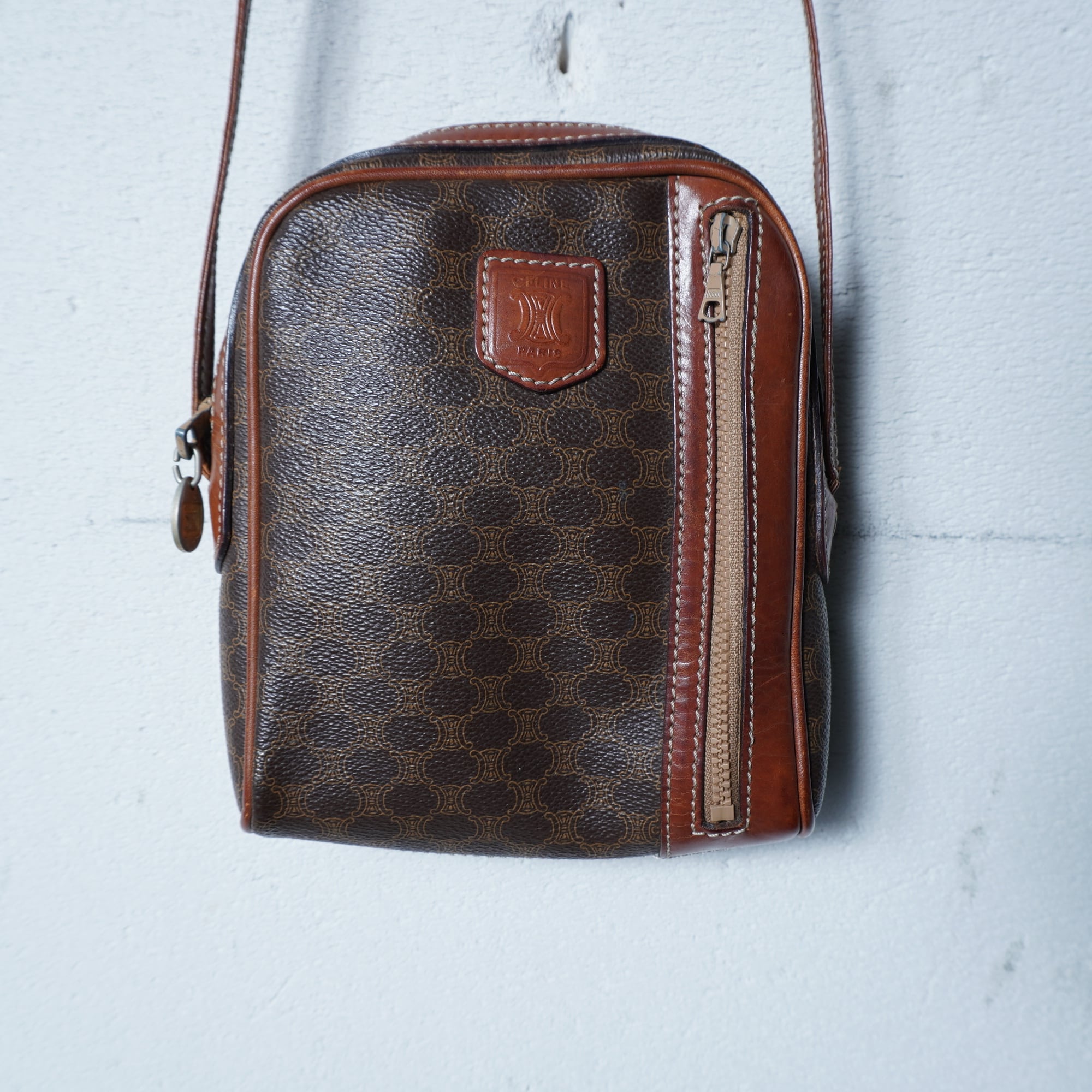 【CELINE】セリーヌ ”トリオンフロゴ” マカダム柄レザーミニショルダーバッグ brown