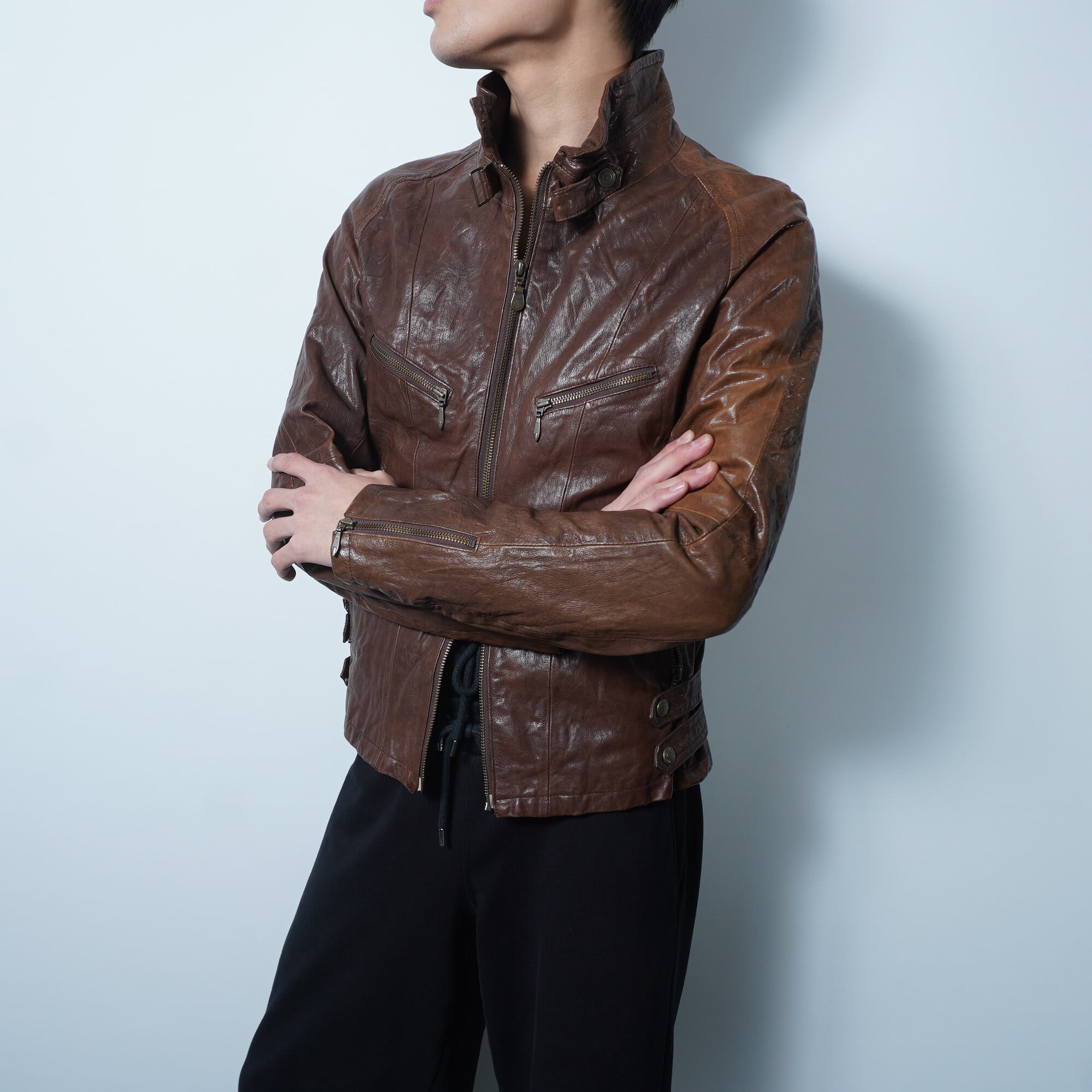 【TORNADO MART】トルネードマート 山羊革 ダブルジップシングルレザージャケット brown