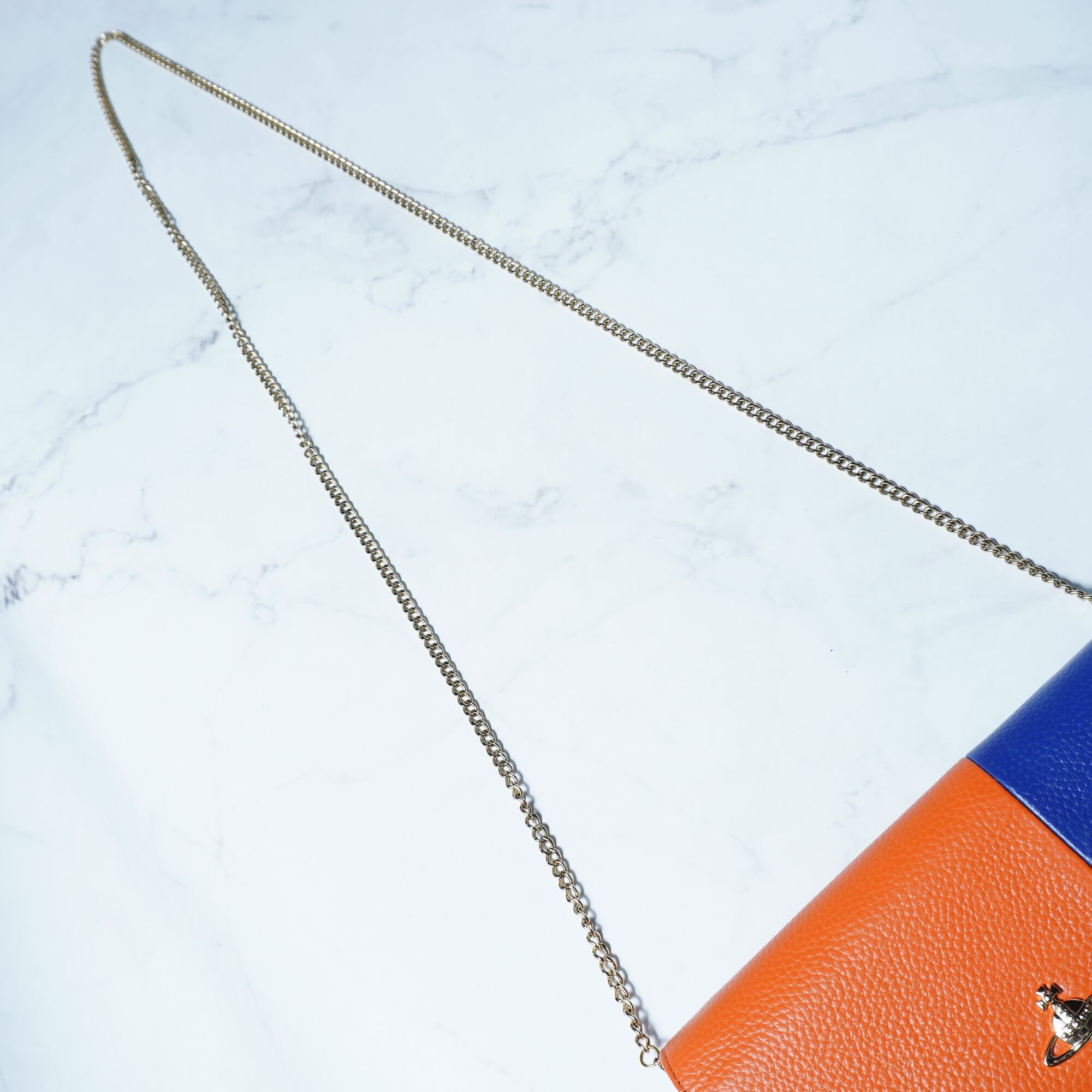 【Vivienne Westwood】ヴィヴィアンウエストウッド "オーブロゴ" ショルダーチェーンバイカラーレザーロングウォレット orange&blue