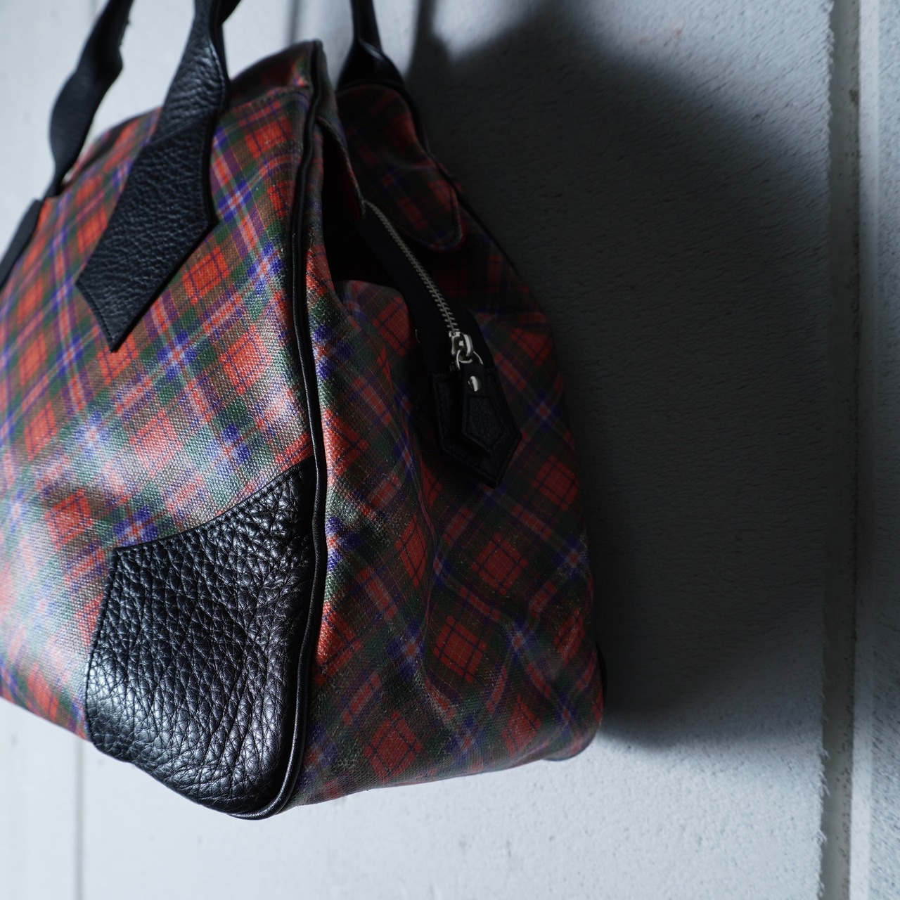 【Vivienne Westwood】ヴィヴィアンウエストウッド "オーブロゴ" ヤスミンチェック柄 レザーハンドバッグ orange&green&blue