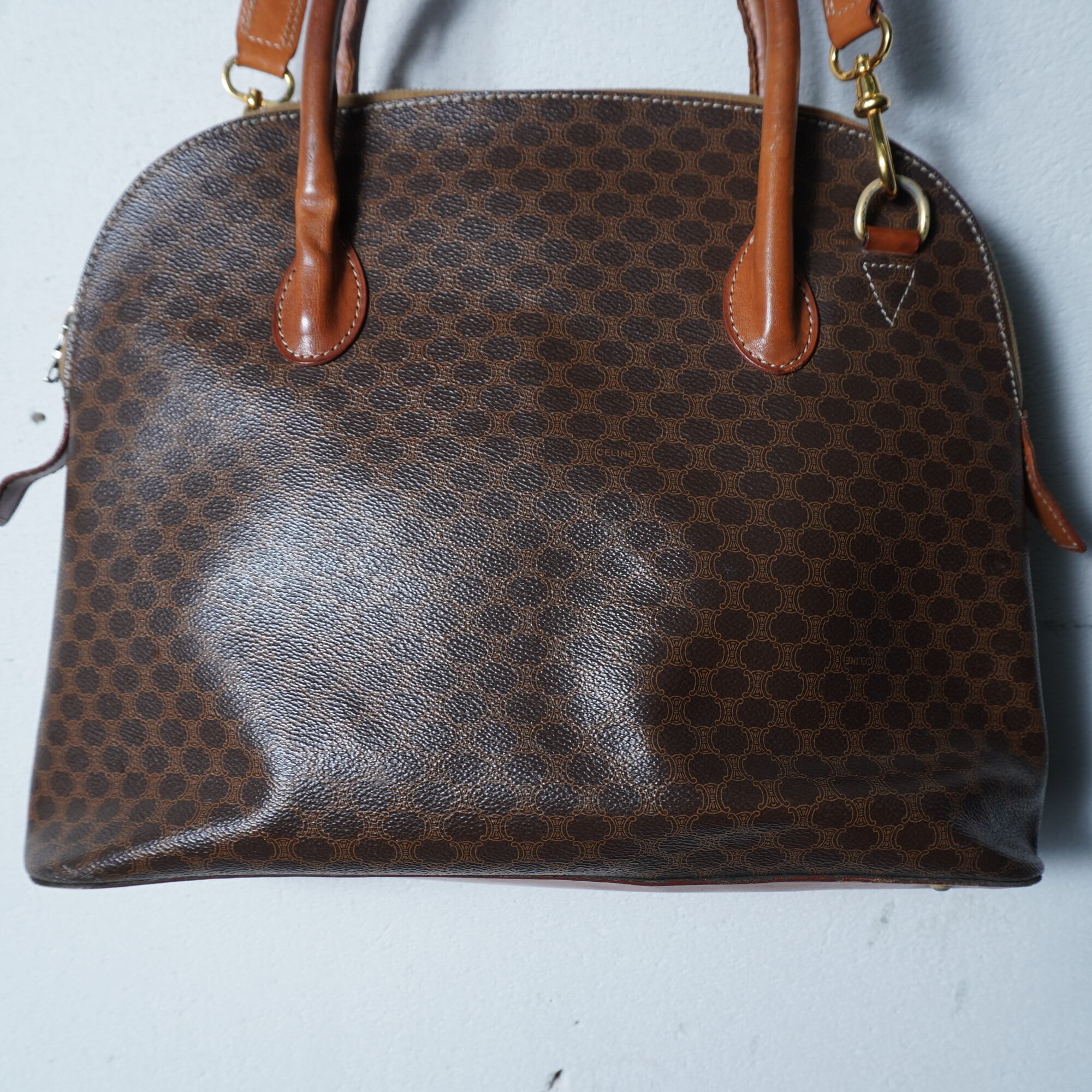 【CELINE】セリーヌ ”ゴールド金具” マカダム柄2WAYレザーショルダーバッグ brown