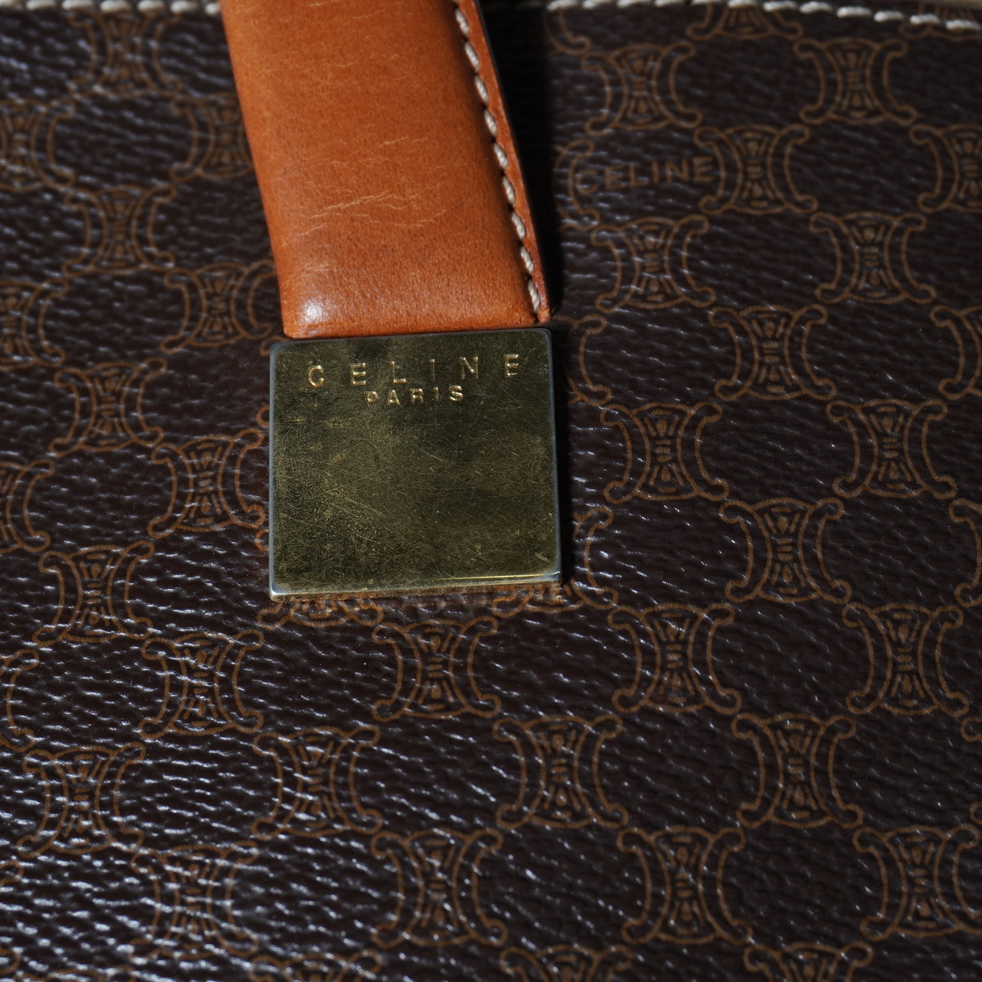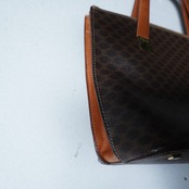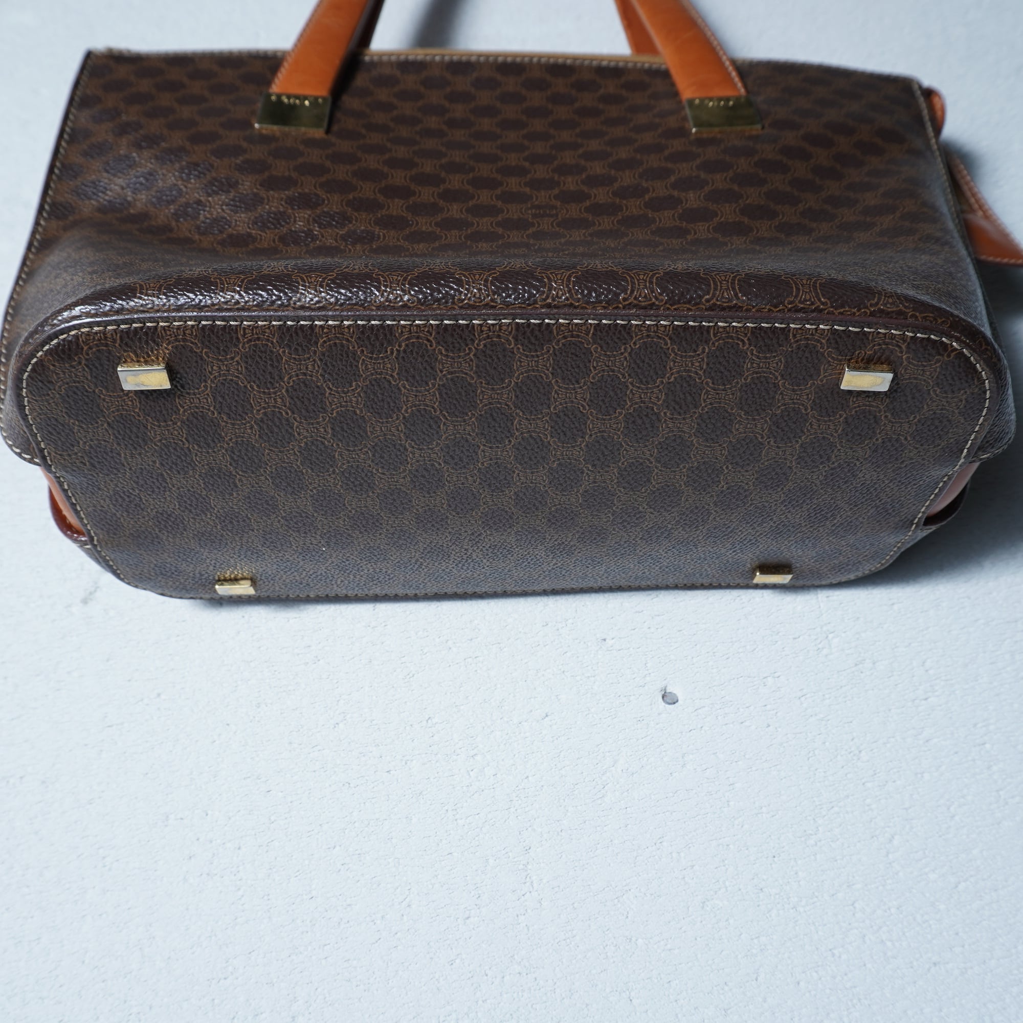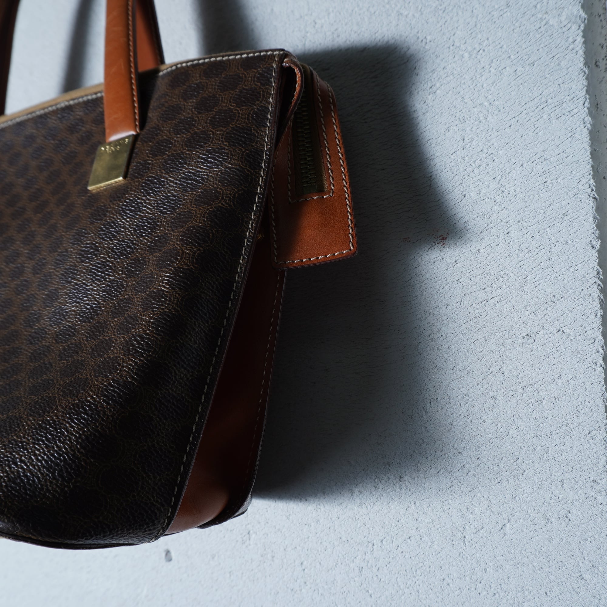 【CELINE】セリーヌ ”ロゴ入ゴールド金具” マカダム柄レザーハンドバッグ brown
