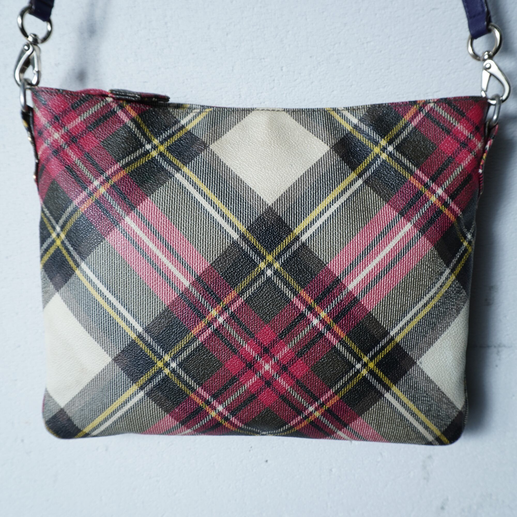 【Vivienne Westwood】ヴィヴィアンウエストウッド "オーブロゴ"チェック柄リアルレザースクエアショルダーバッグ red&black&white