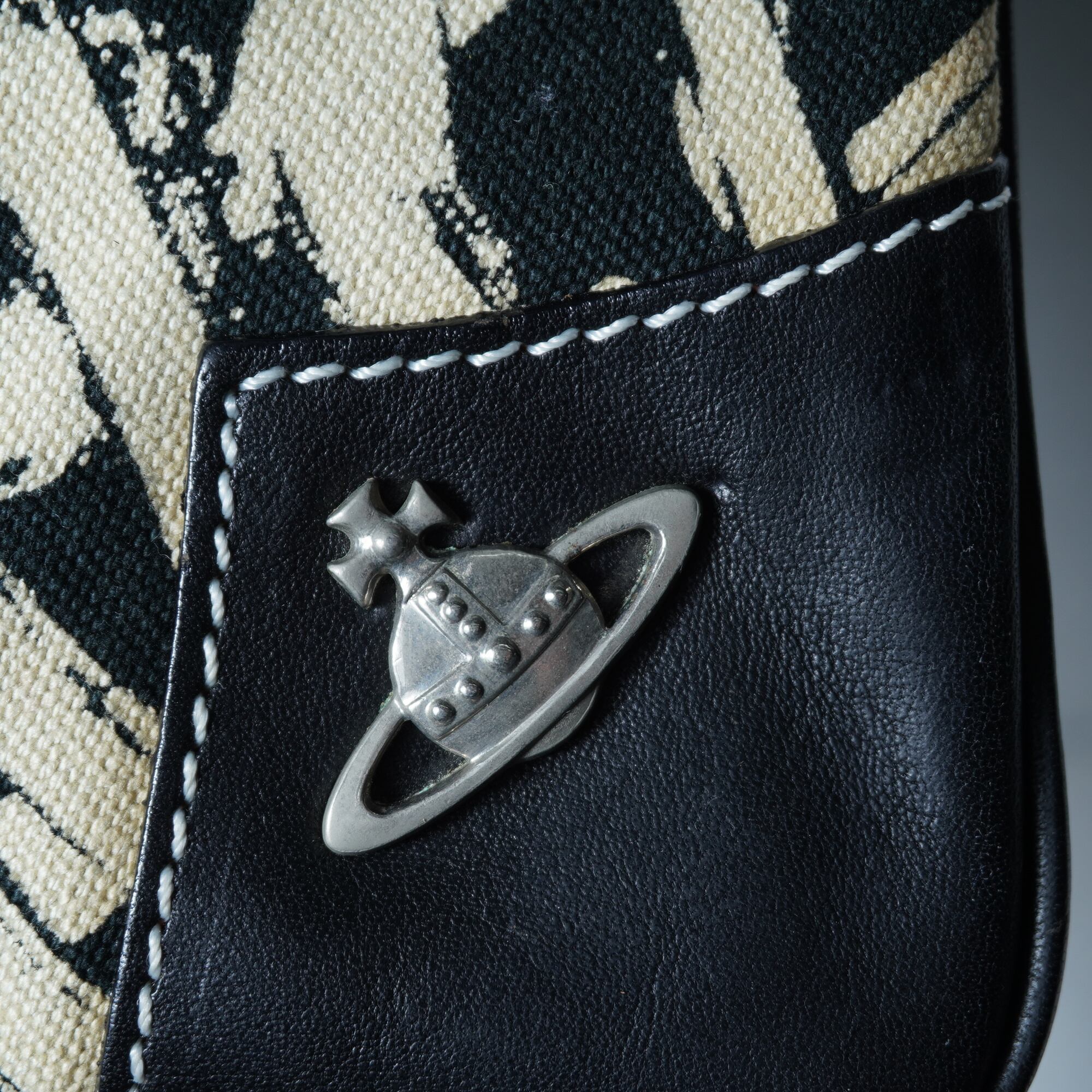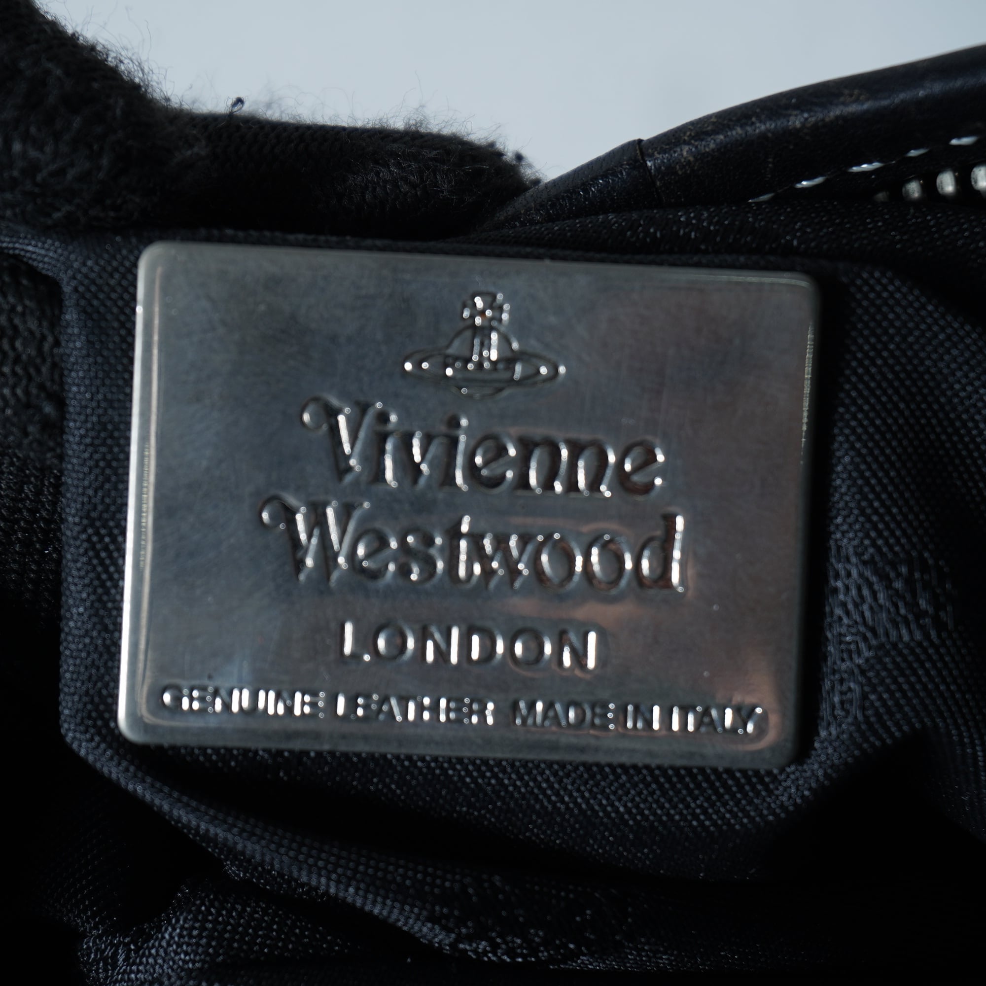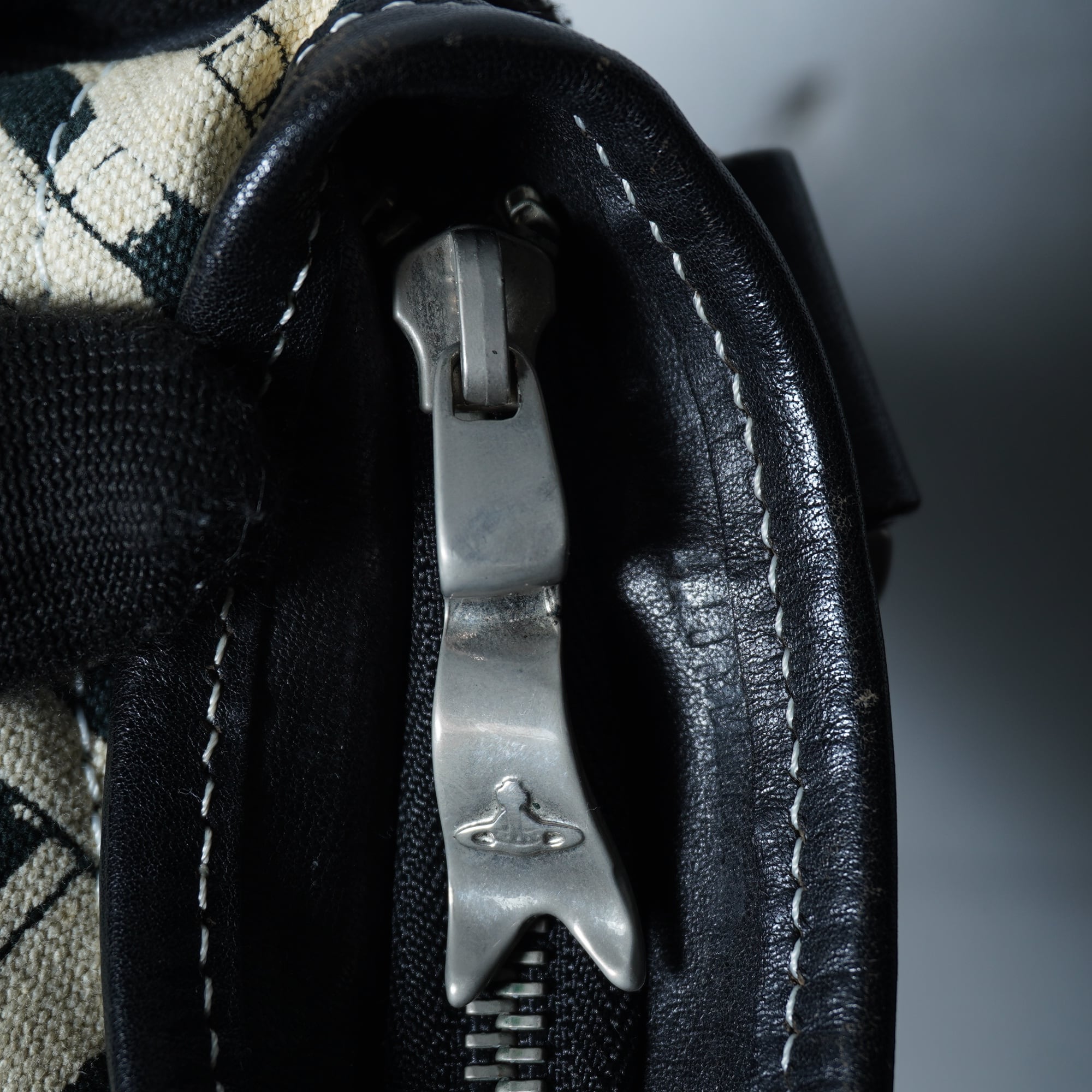 【Vivienne Westwood】ヴィヴィアンウエストウッド”オーブロゴ”チェック柄リアルレザーショルダーバッグ black&white