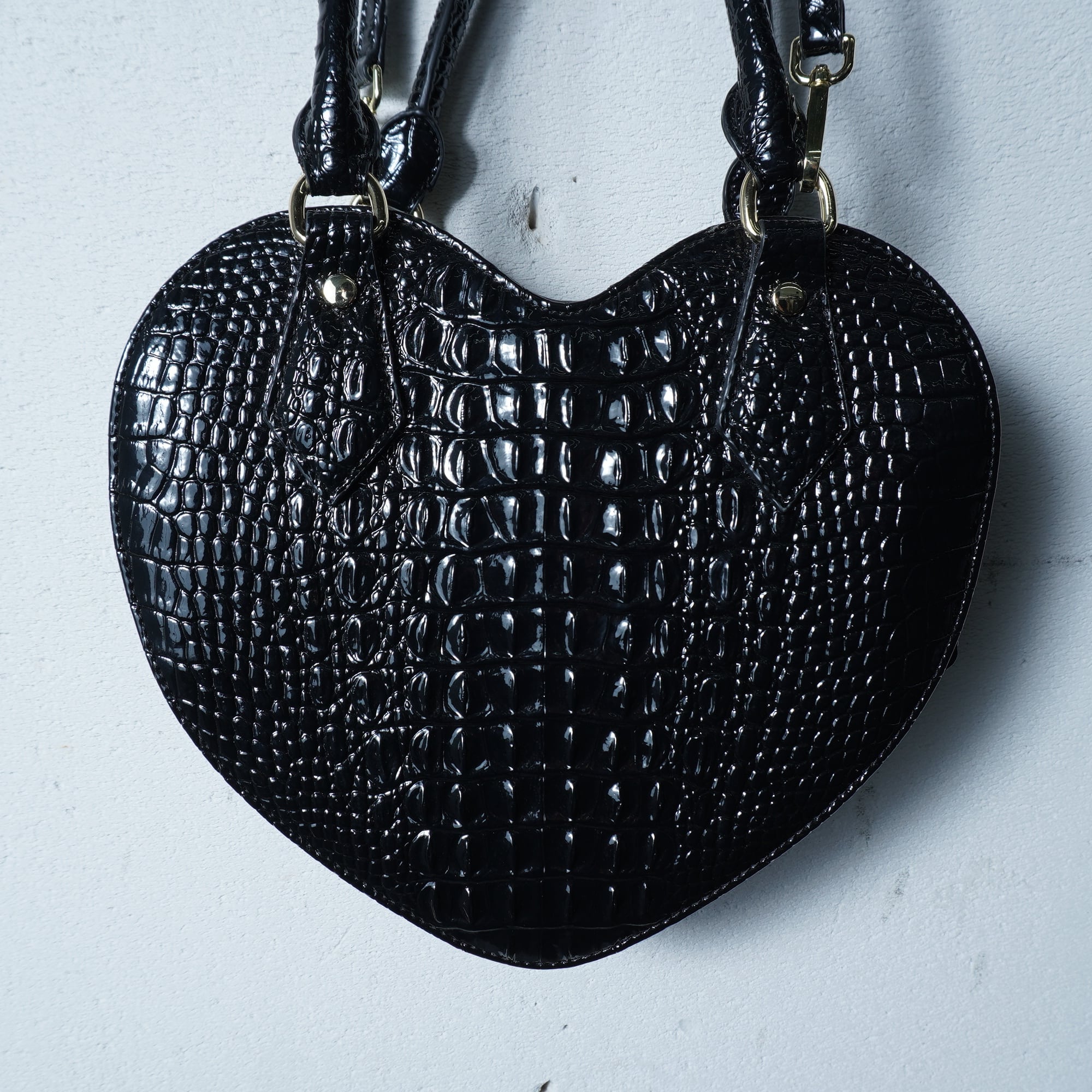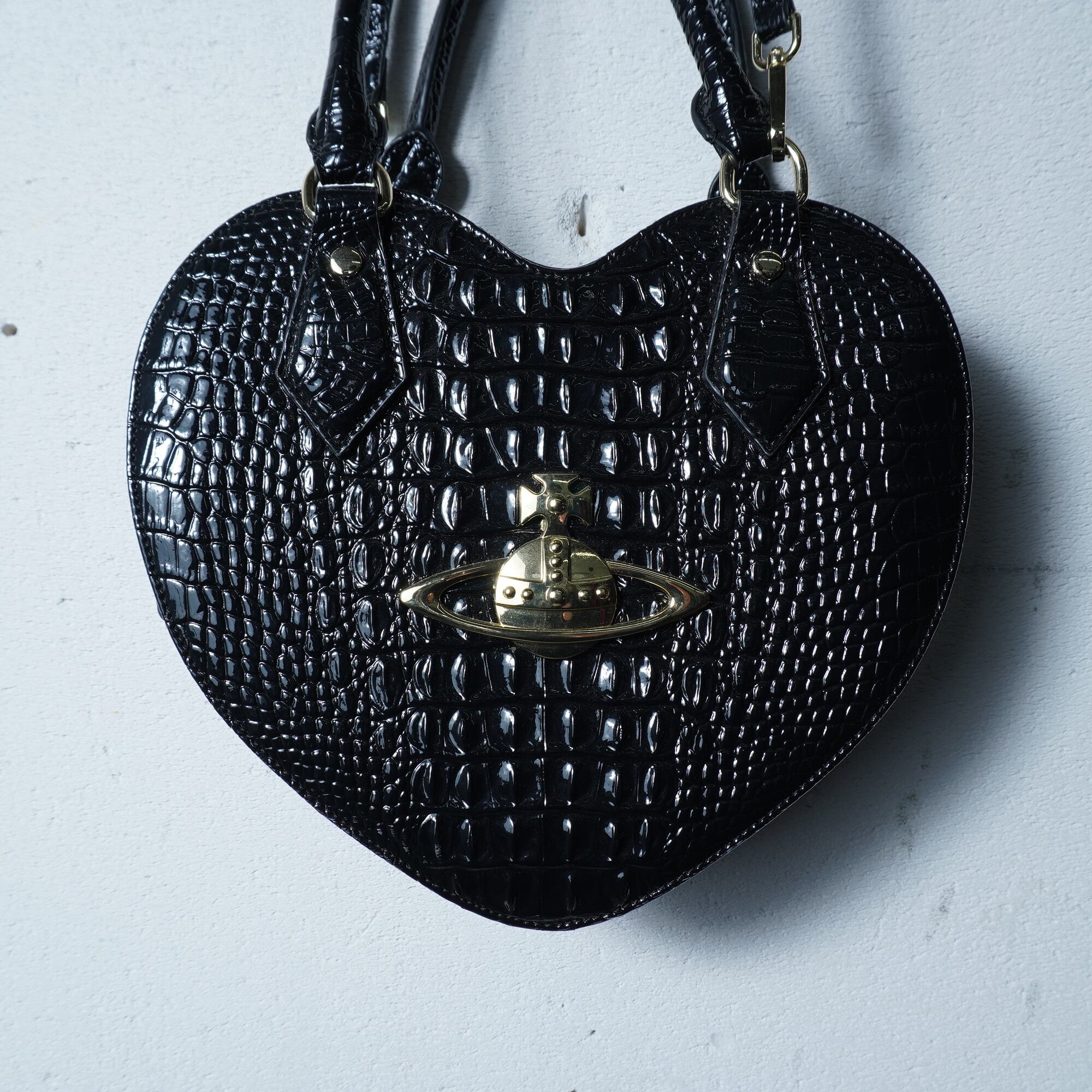 【Vivienne Westwood】ヴィヴィアンウエストウッド”オーブロゴ”ハートクロコダイルエナメル加工リアルレザーハンドバッグ black