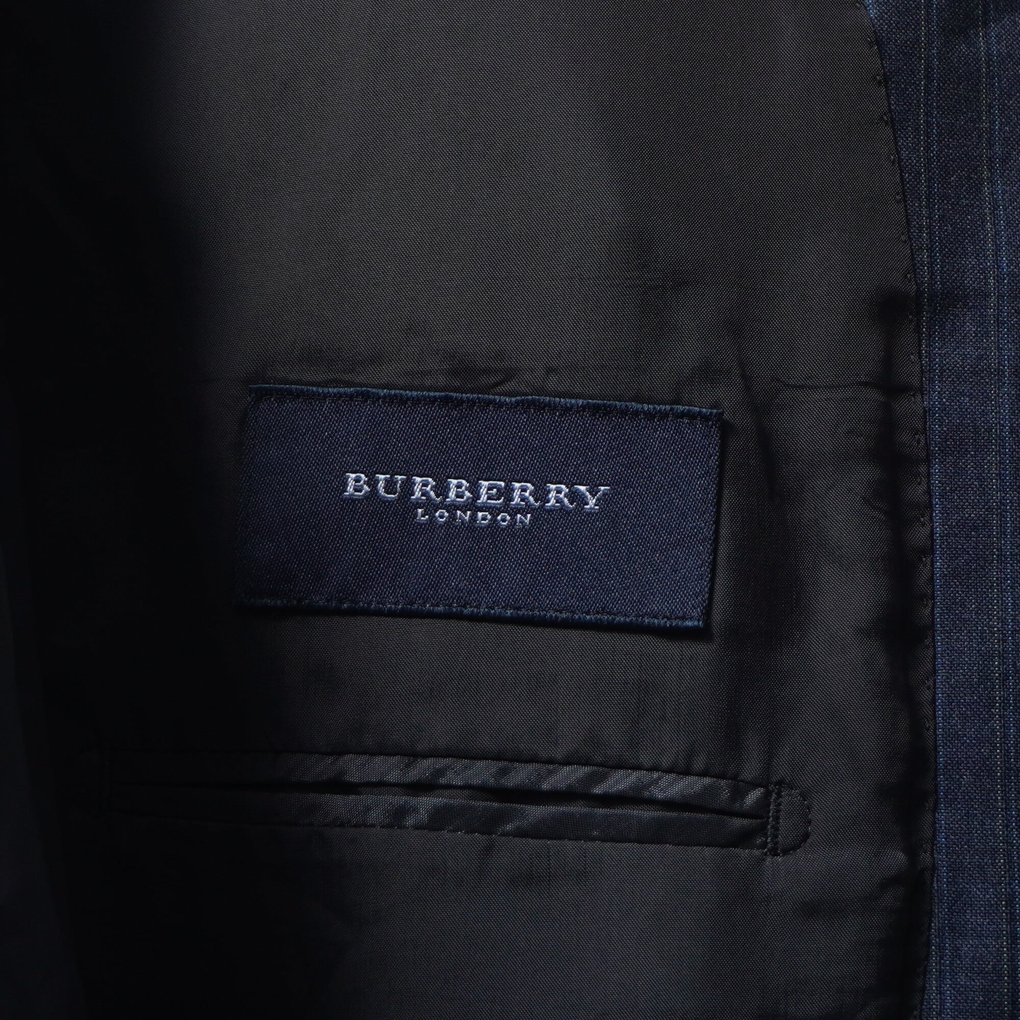 【BURBERRY】バーバリー LONDON 背抜き3Bシングルピンストライプセットアップスーツ navy