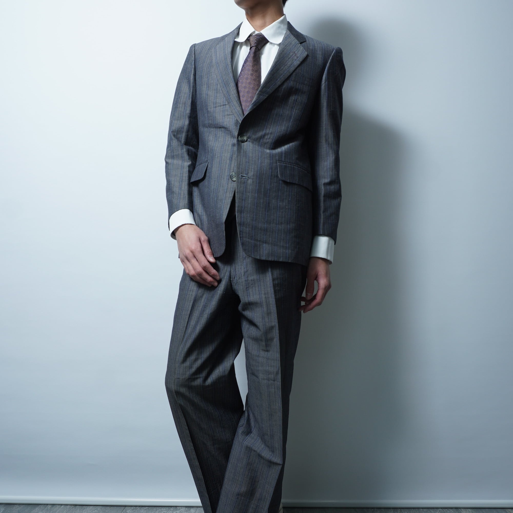 【Christian Dior】クリスチャンディオール 麻混 背抜きチェック柄シングルセットアップスーツ grey