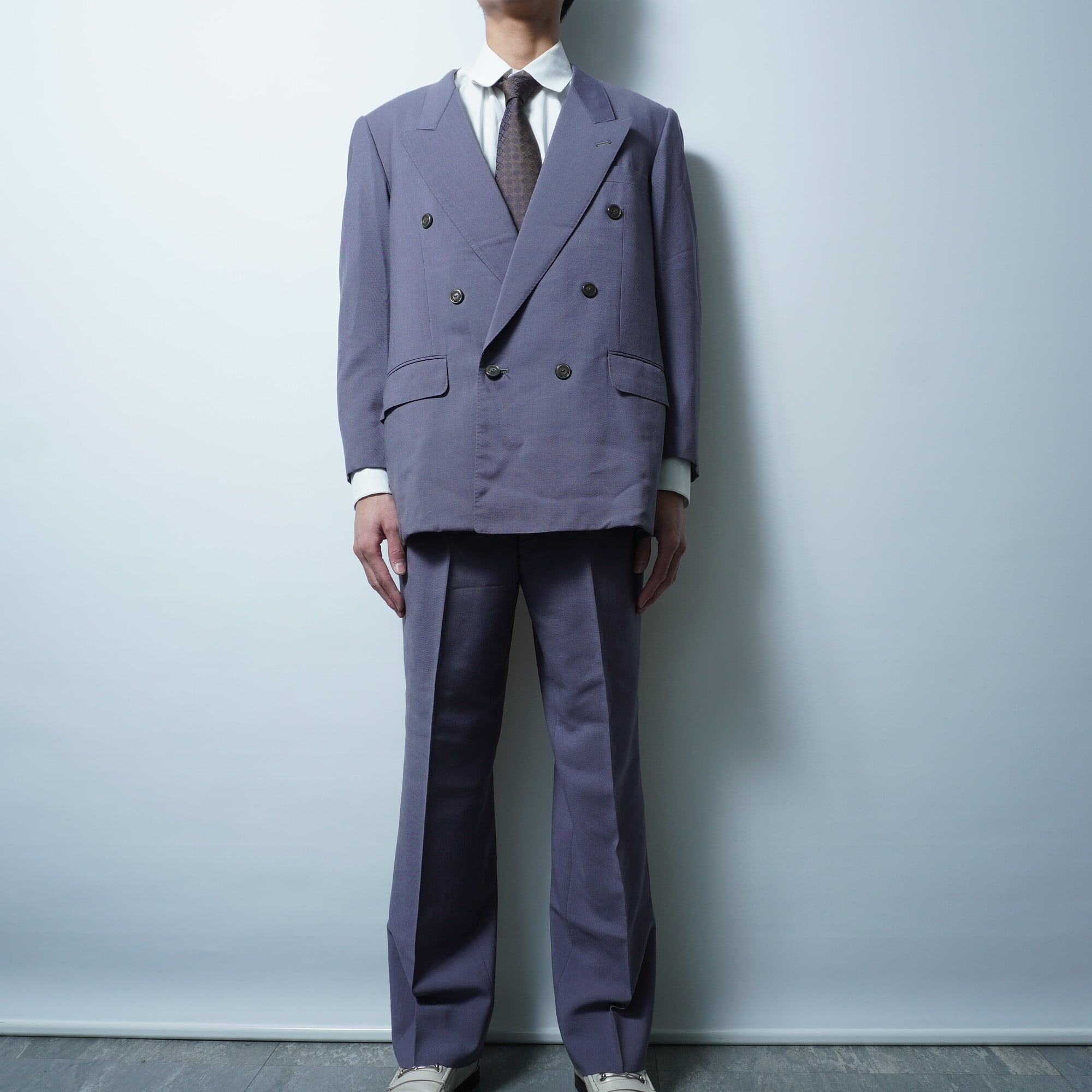 【Yves Saint Laurent】イヴサンローラン 90's vintage テーラー仕立て ウール系背抜きダブルセットアップスーツ gray