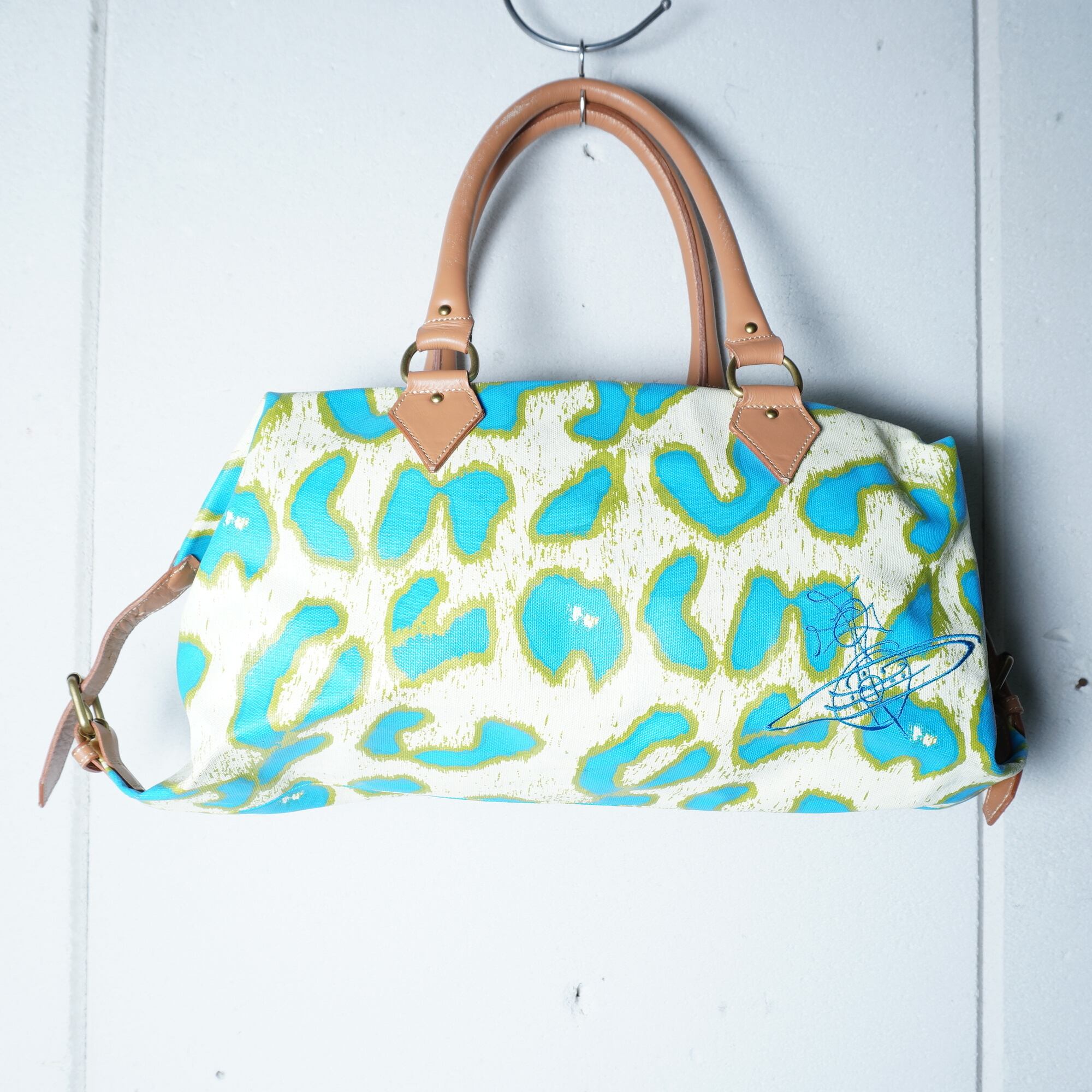 【Vivienne Westwood】ヴィヴィアンウエストウッド "オーブロゴ”マルチカラーレザーハンドルミニボストンバッグ blue & green & white