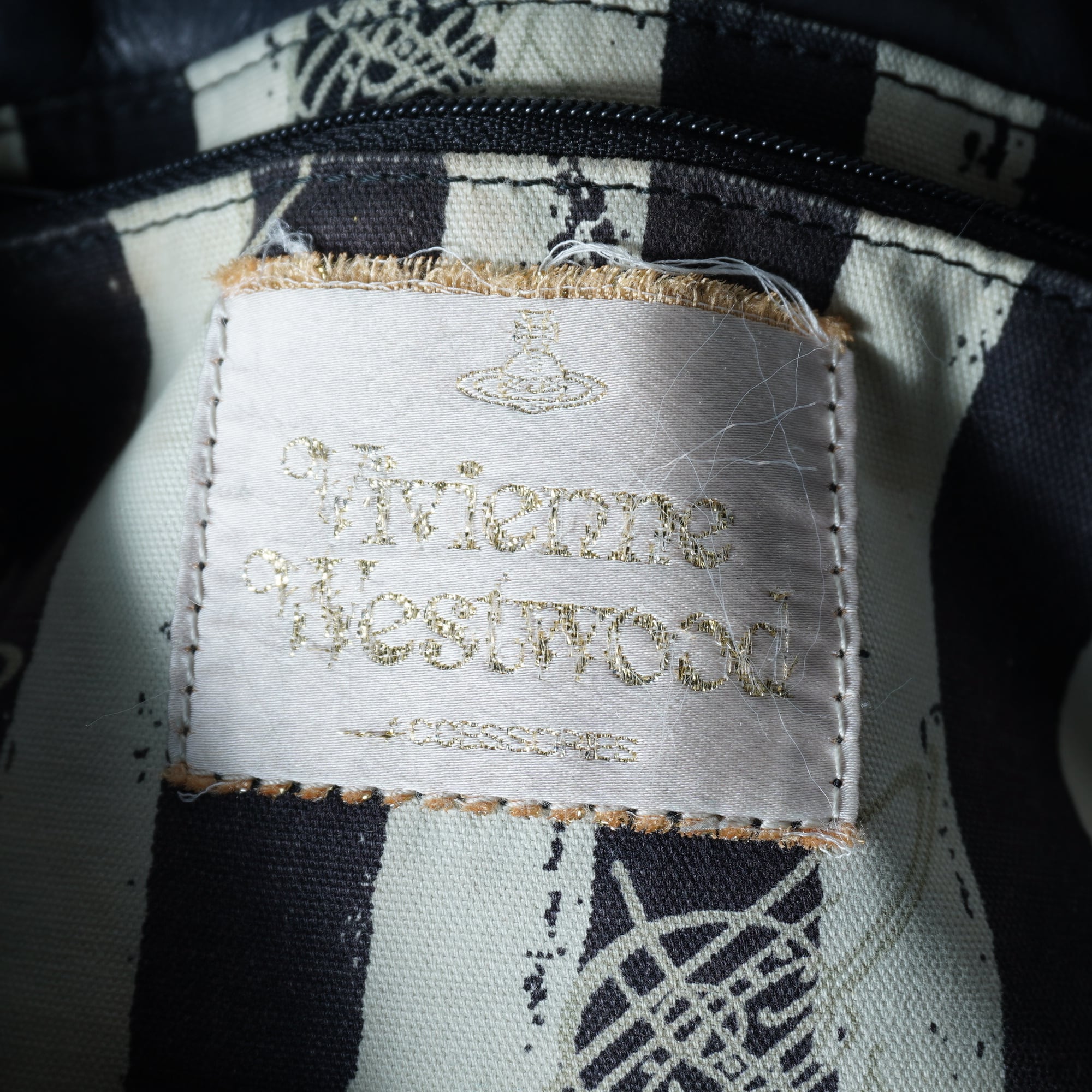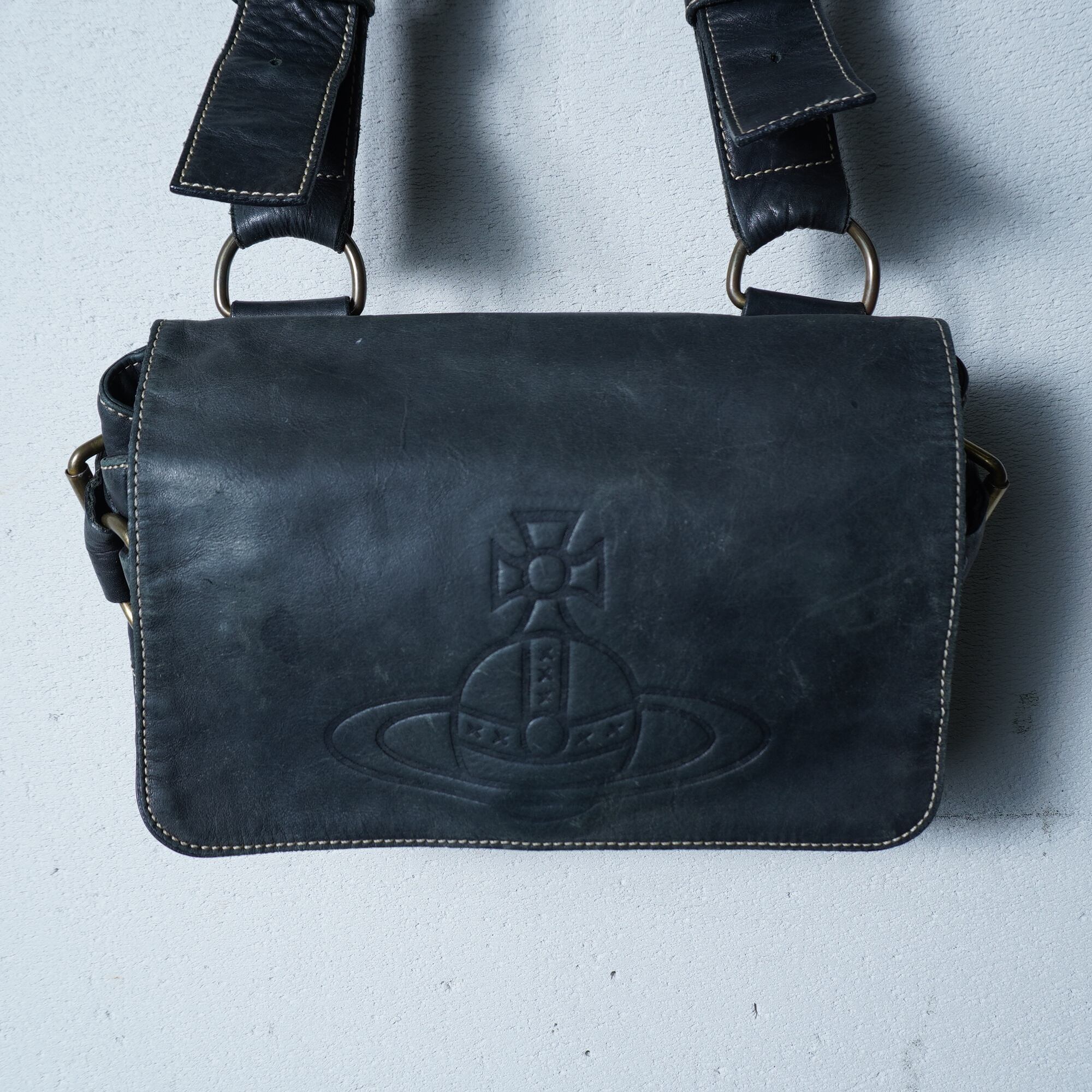 【Vivienne Westwood】ヴィヴィアンウエストウッド "アコード”エンボス加工オーブロゴレザーショルダーバッグ black