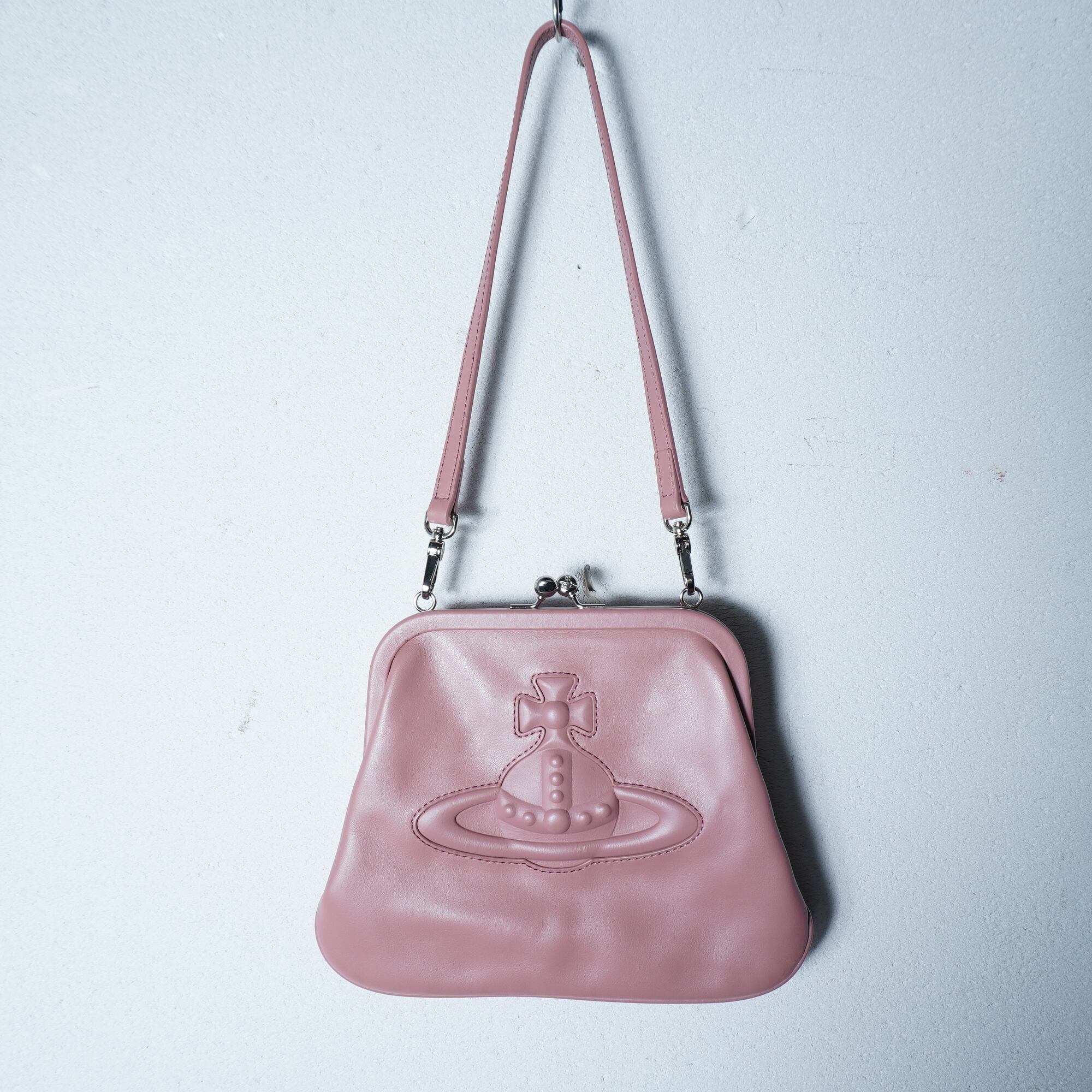 【Vivienne Westwood】ヴィヴィアンウエストウッド エンボスオーブロゴ リアルレザーがま口ワンショルダーバッグ pink