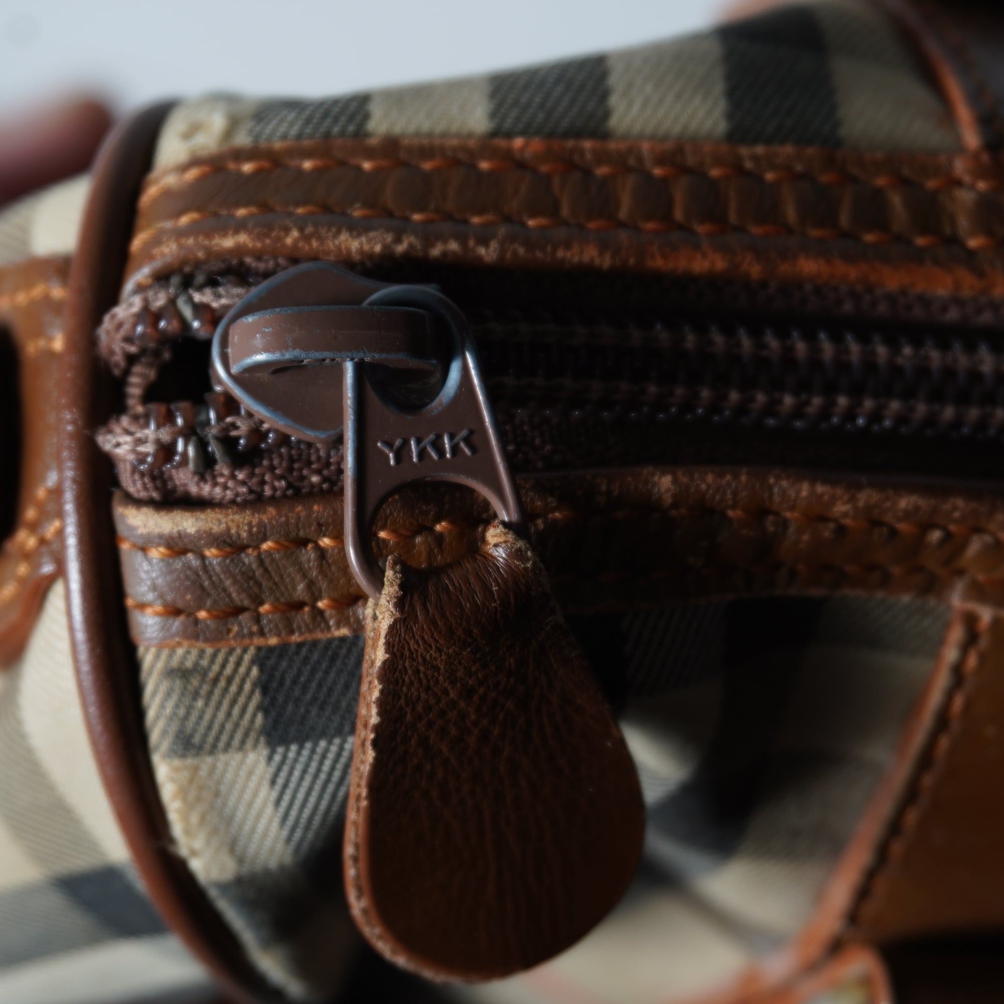 【BURBERRY】バーバリー ノバチェック ロゴ入シャドーホースレザー切替ミニボストンバッグ beige