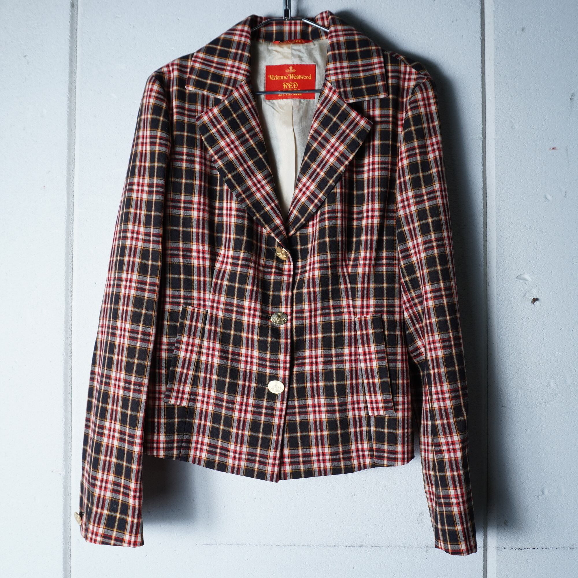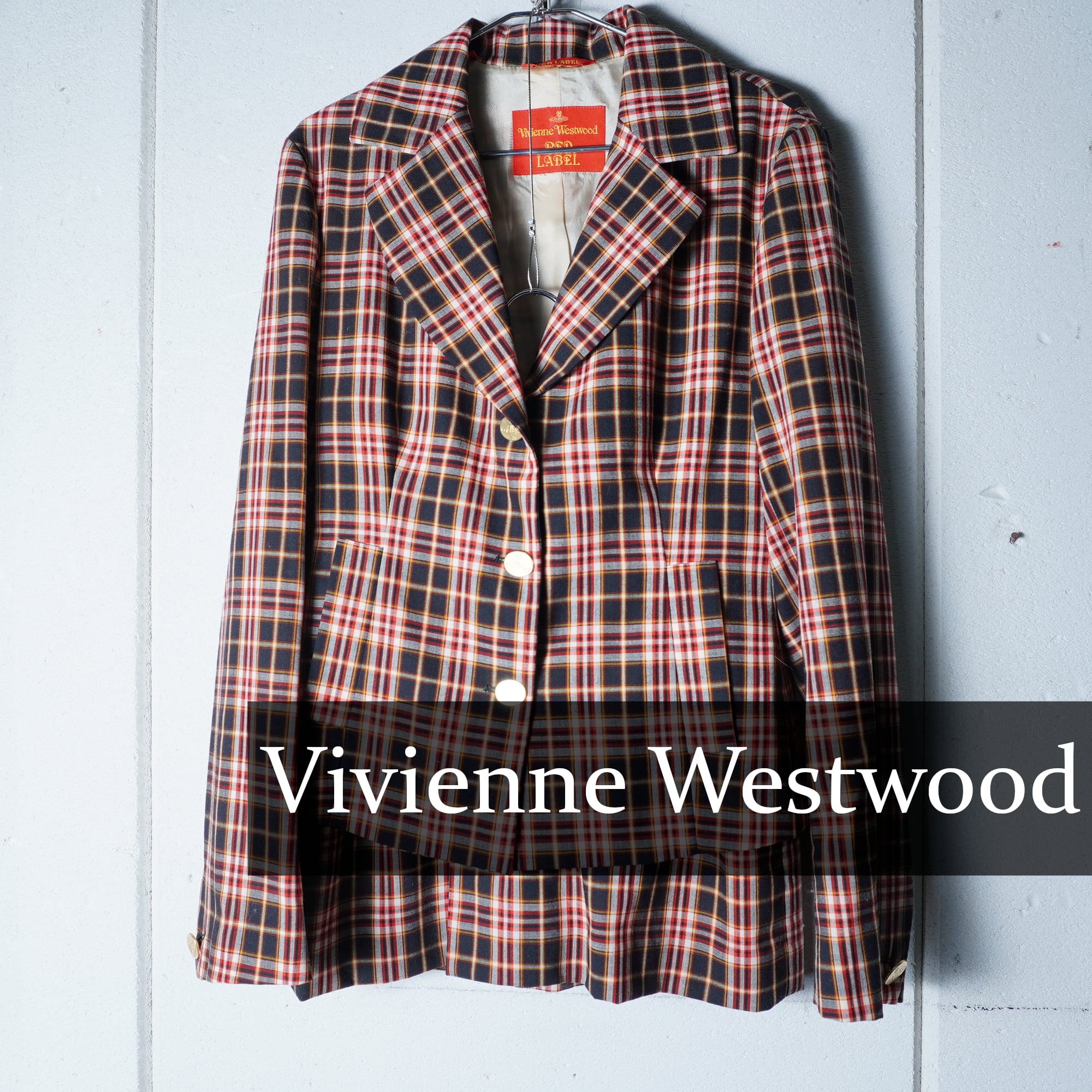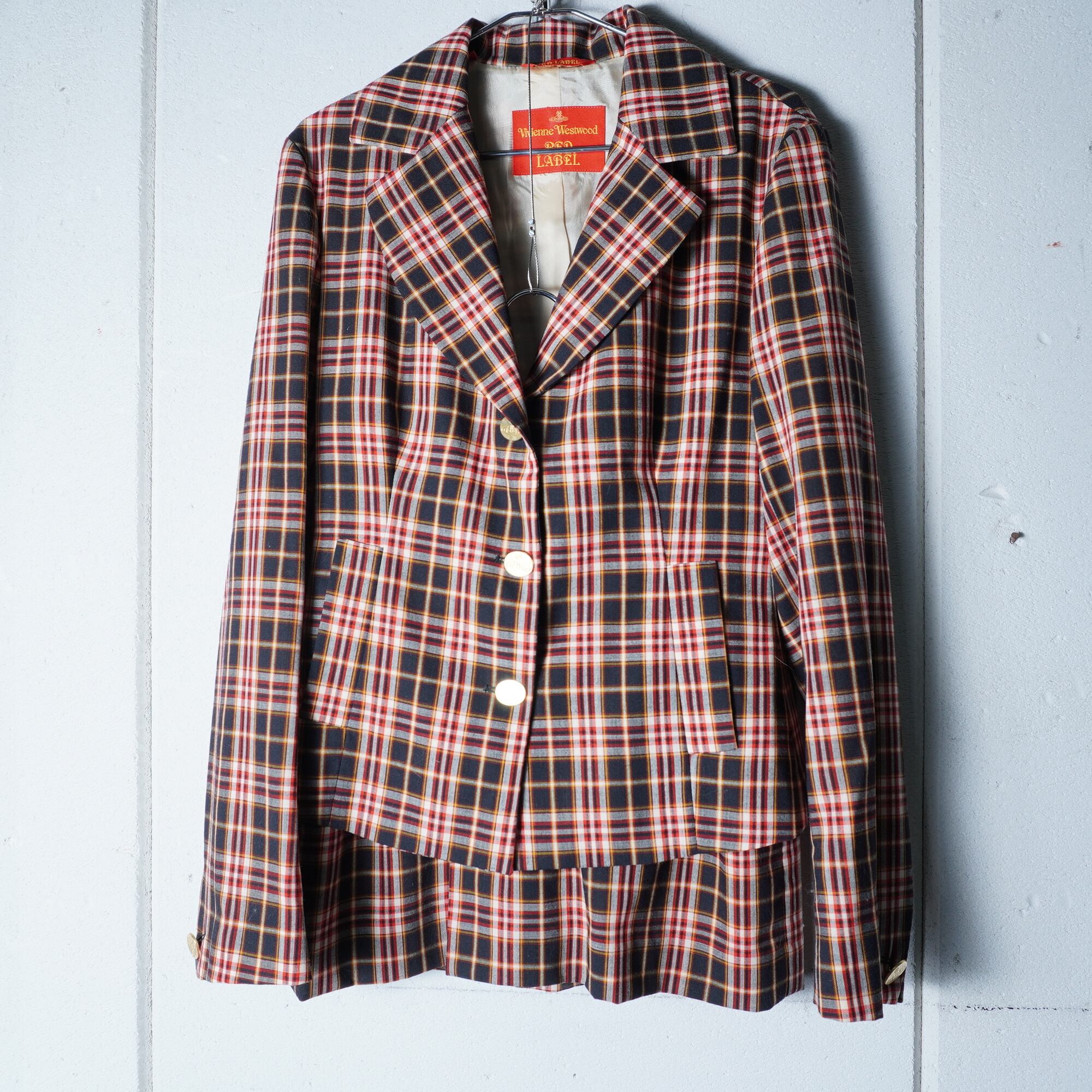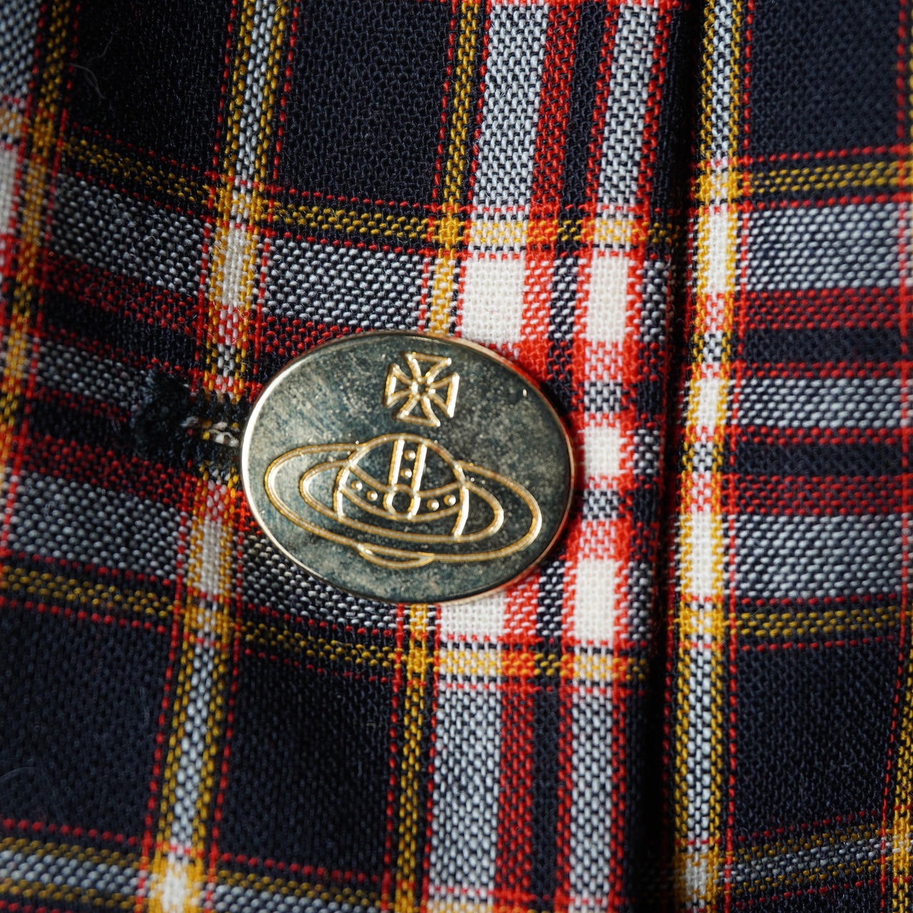 【Vivienne Westwood】ヴィヴィアンウエストウッド "オーブロゴ金ボタン”チェック柄ウールジャケット・スカートセットアップ black & red & yellow