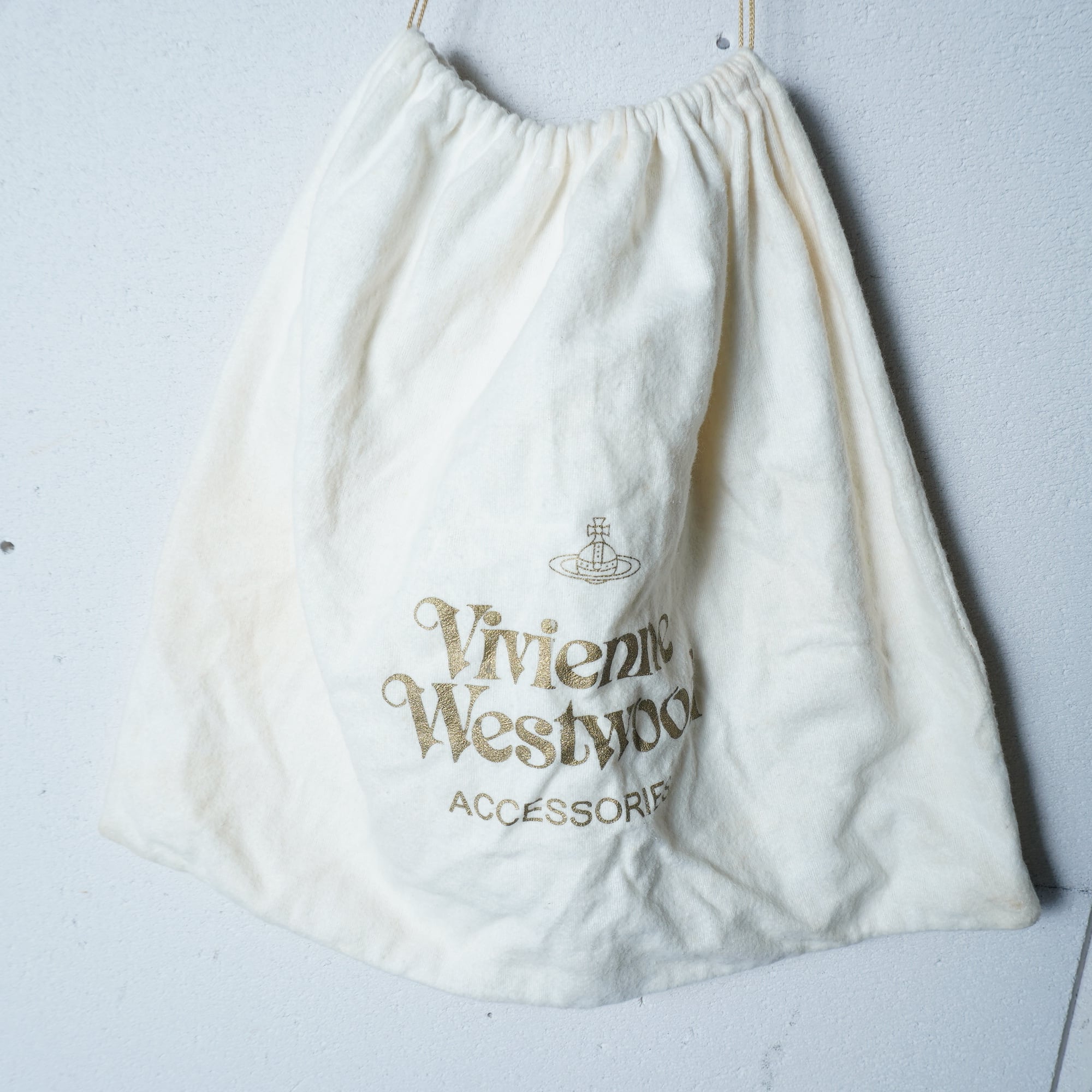 【Vivienne Westwood】ヴィヴィアンウエストウッド "オーブロゴ" シボ加工 リアルレザーハンドバッグ navy