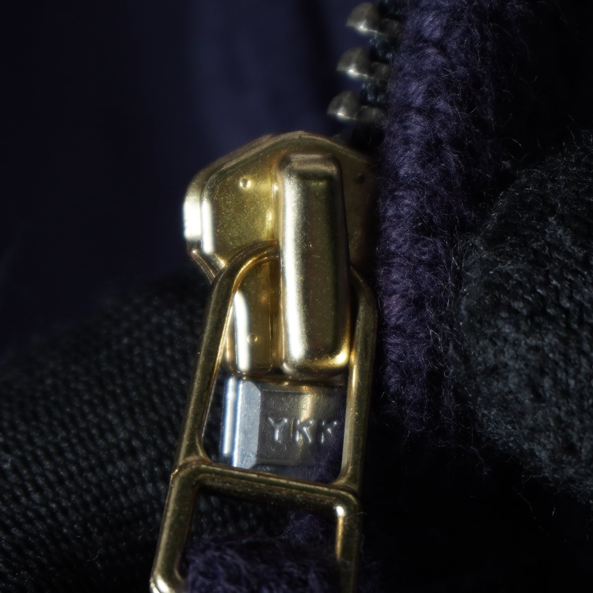 【BURBERRY】バーバリー "ホースロゴ刺繍" ジップアップフーデッドニット navy