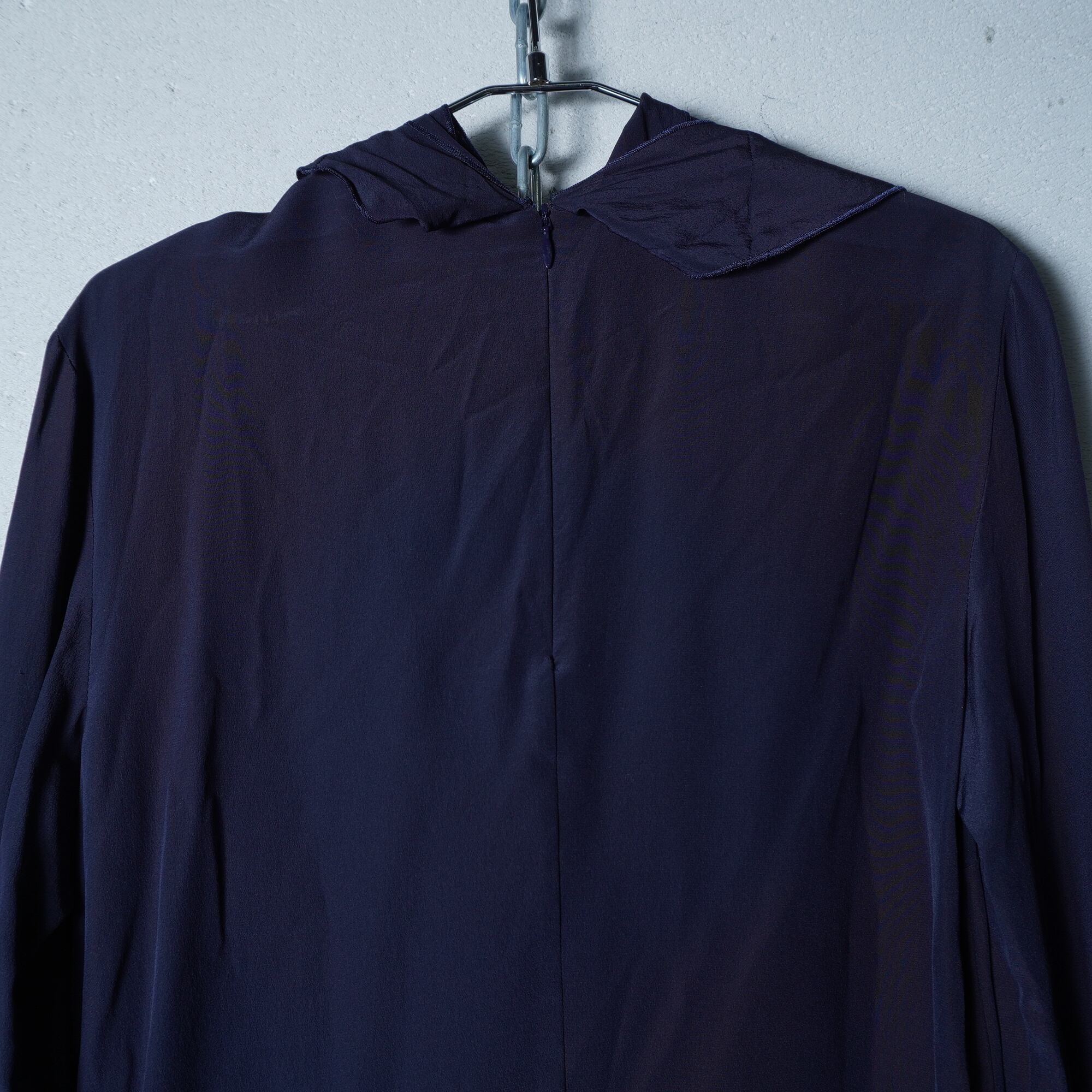 【RED VALENTINO】レッドヴァレンティノ "タグ付" "SILK100%" リボンタイフリルシャツ navy