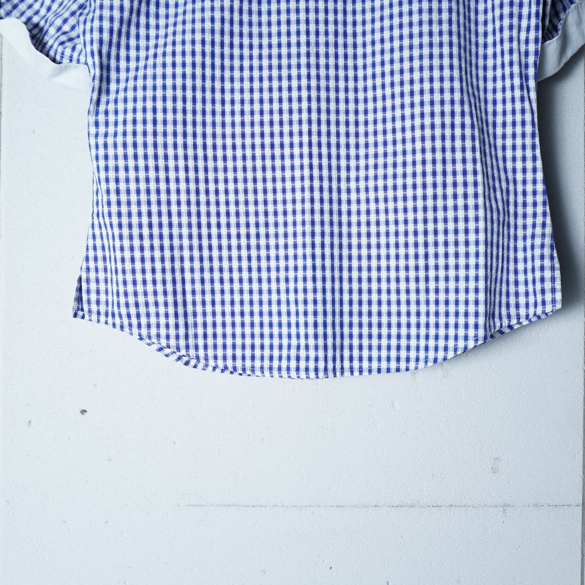 【Vivienne Westwood】ヴィヴィアンウエストウッド ”オーブロゴ刺繡"丸襟チェック柄半袖ボタンシャツ blue&white