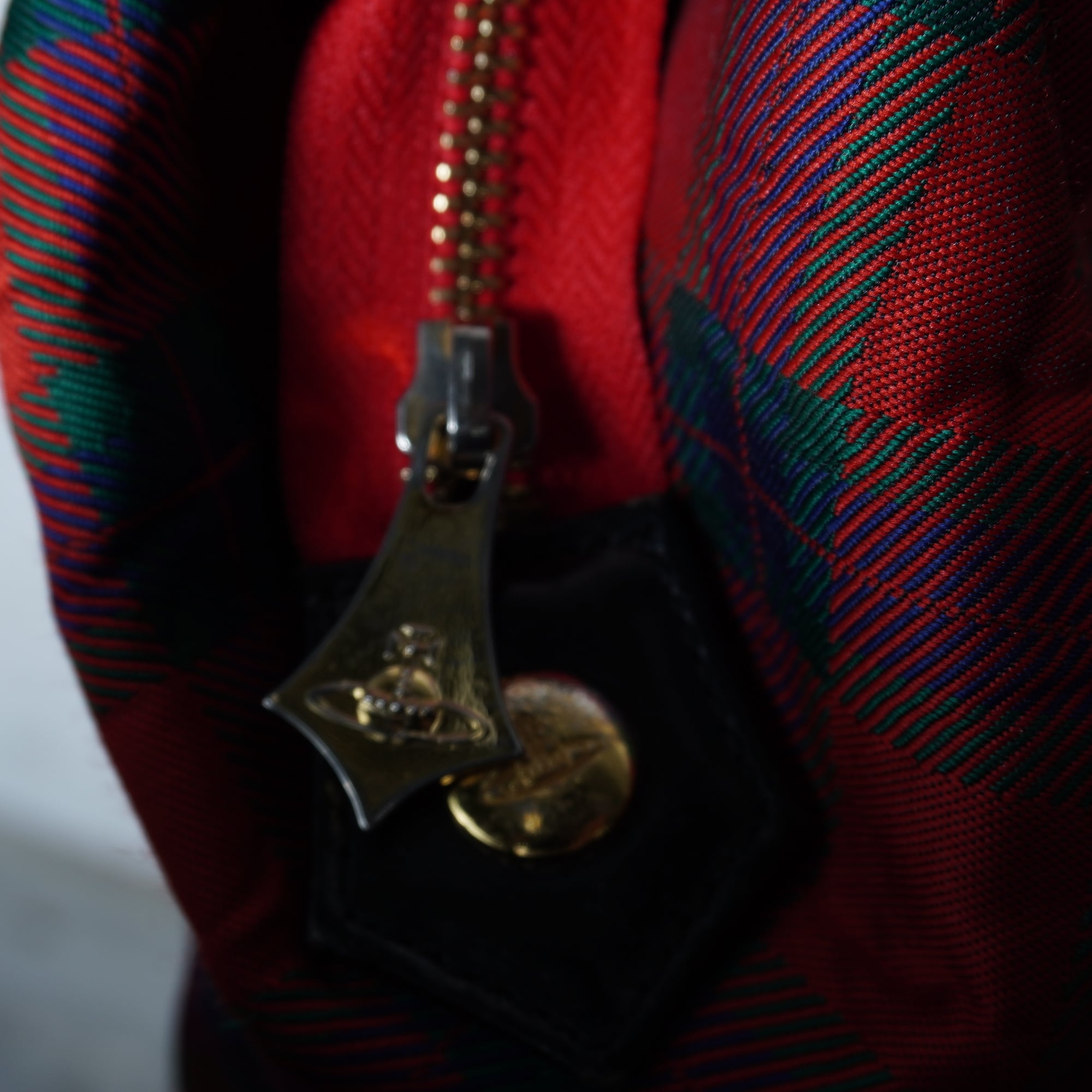 【Vivienne Westwood】ヴィヴィアンウエストウッド オーブロゴ ヤスミンクロスタータンチェックカウレザー切替ハンドバッグ red&green