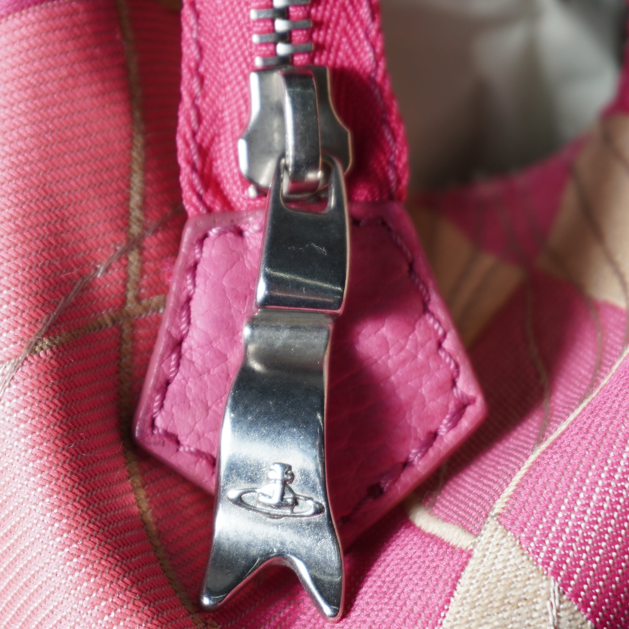 【Vivienne Westwood】ヴィヴィアンウエストウッド オーブロゴ刺繍ヤスミンアーガイル柄ボストンバッグ pink&beigje