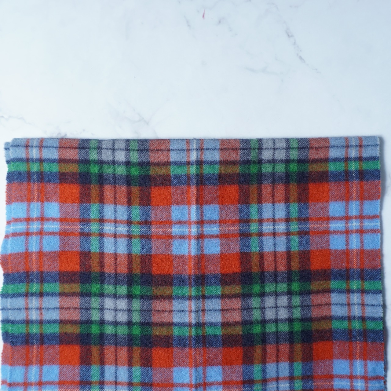 【Vivienne Westwood】ヴィヴィアンウエストウッド "オーブロゴ刺繡"フリンジカシミアチェックストールマフラー orange&blue&green