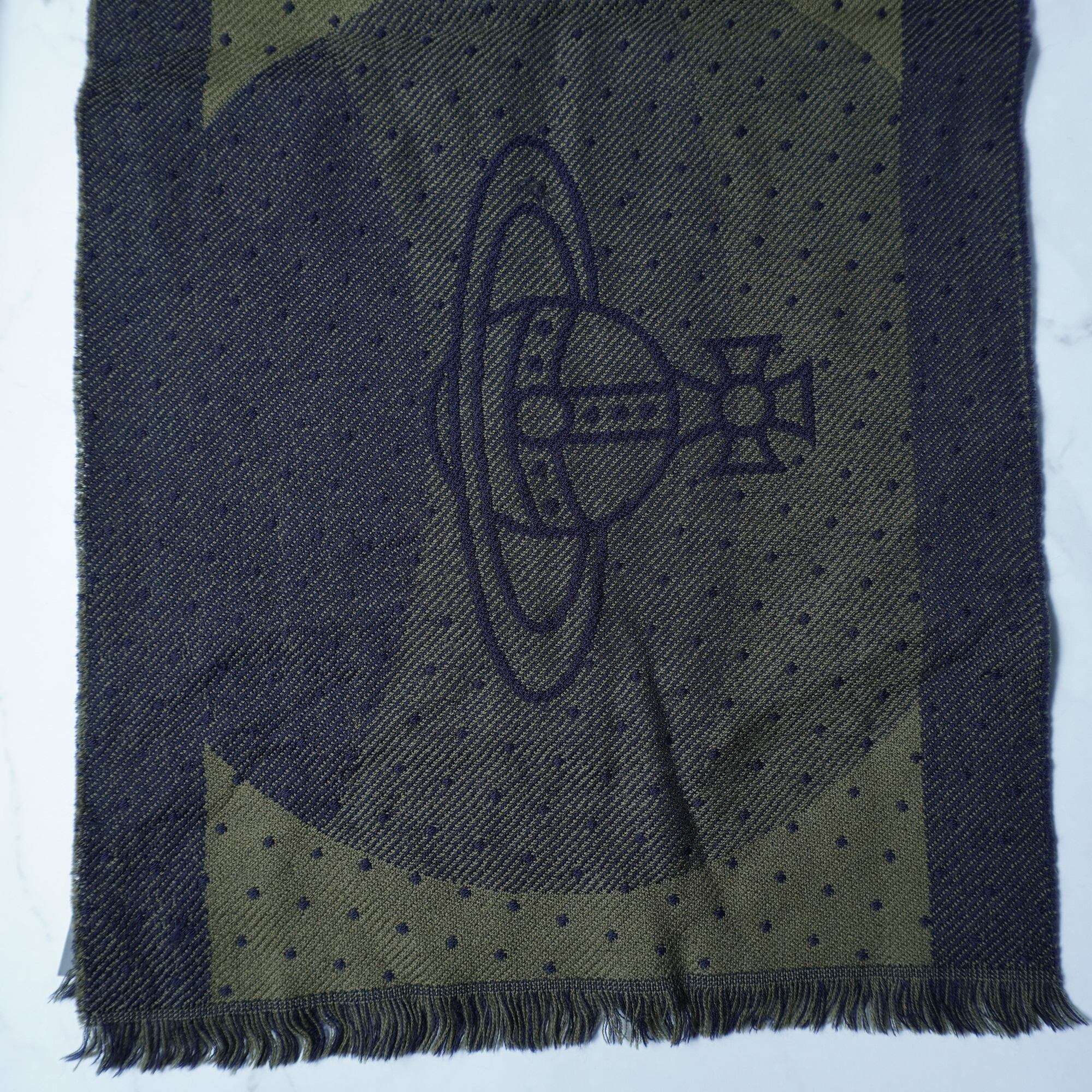 【Vivienne Westwood】ヴィヴィアンウエストウッド "WOOL100%"オーブロゴ・ドット柄マフラー