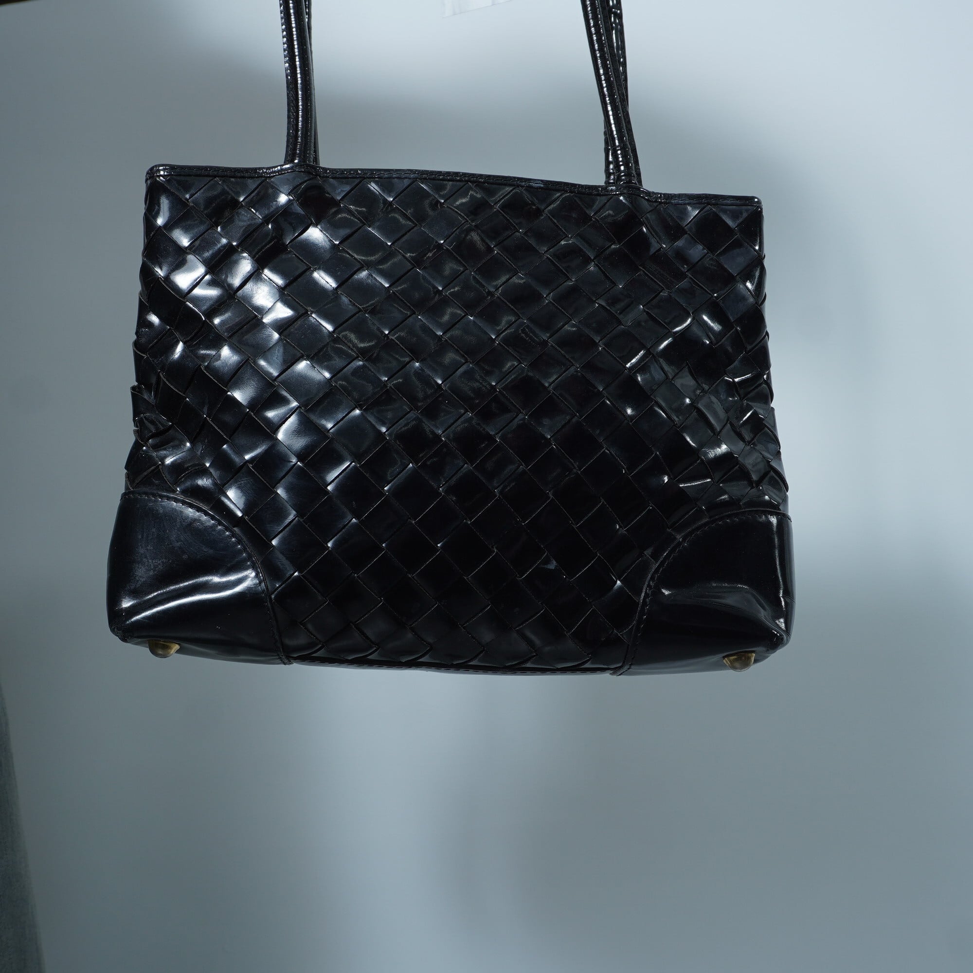 【BOTTEAGA BENETA】ボッテガヴェネタ vintage パテントレザーイントレチャートデザインショルダーバッグ black