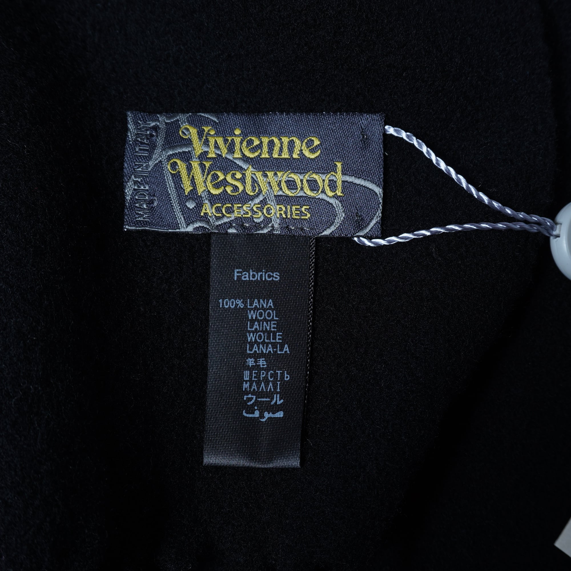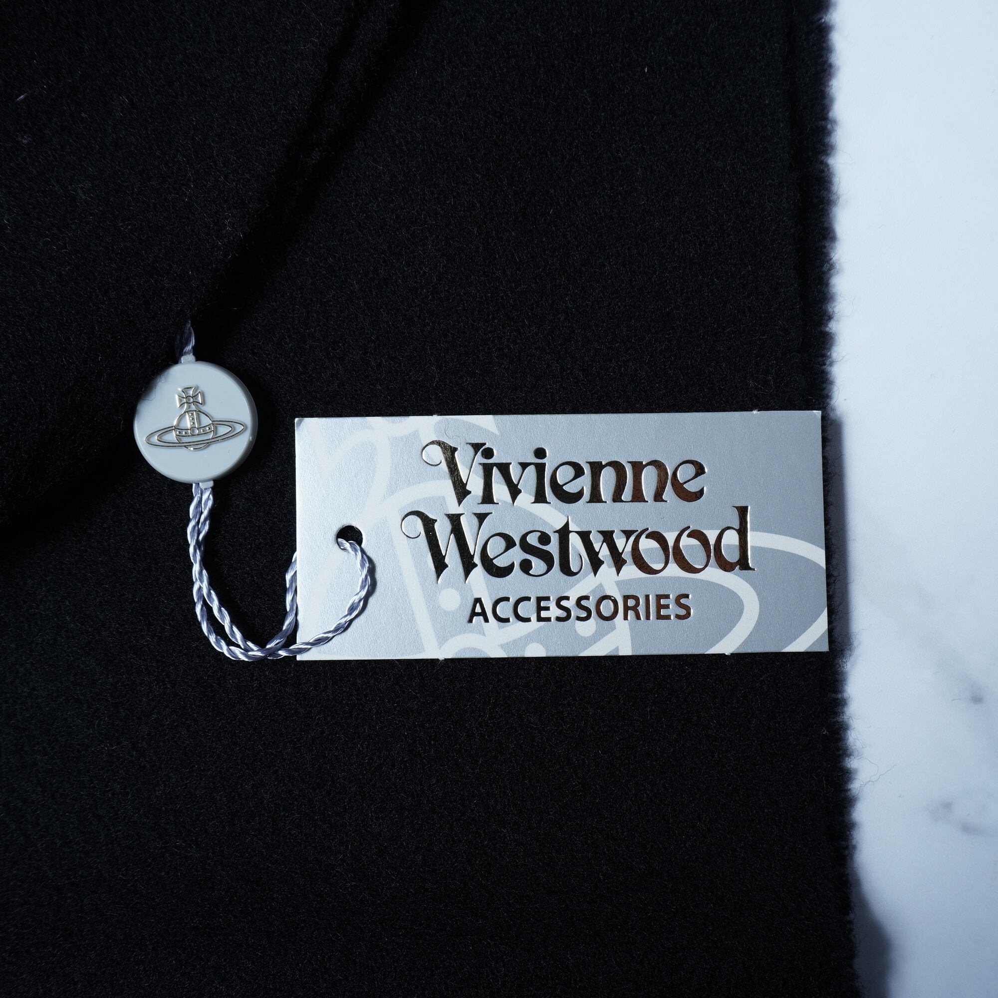 【Vivienne Westwood】ヴィヴィアンウエストウッド ”タグ付・極美品””オーブロゴ刺繍”WOOL100%フリンジマフラー black