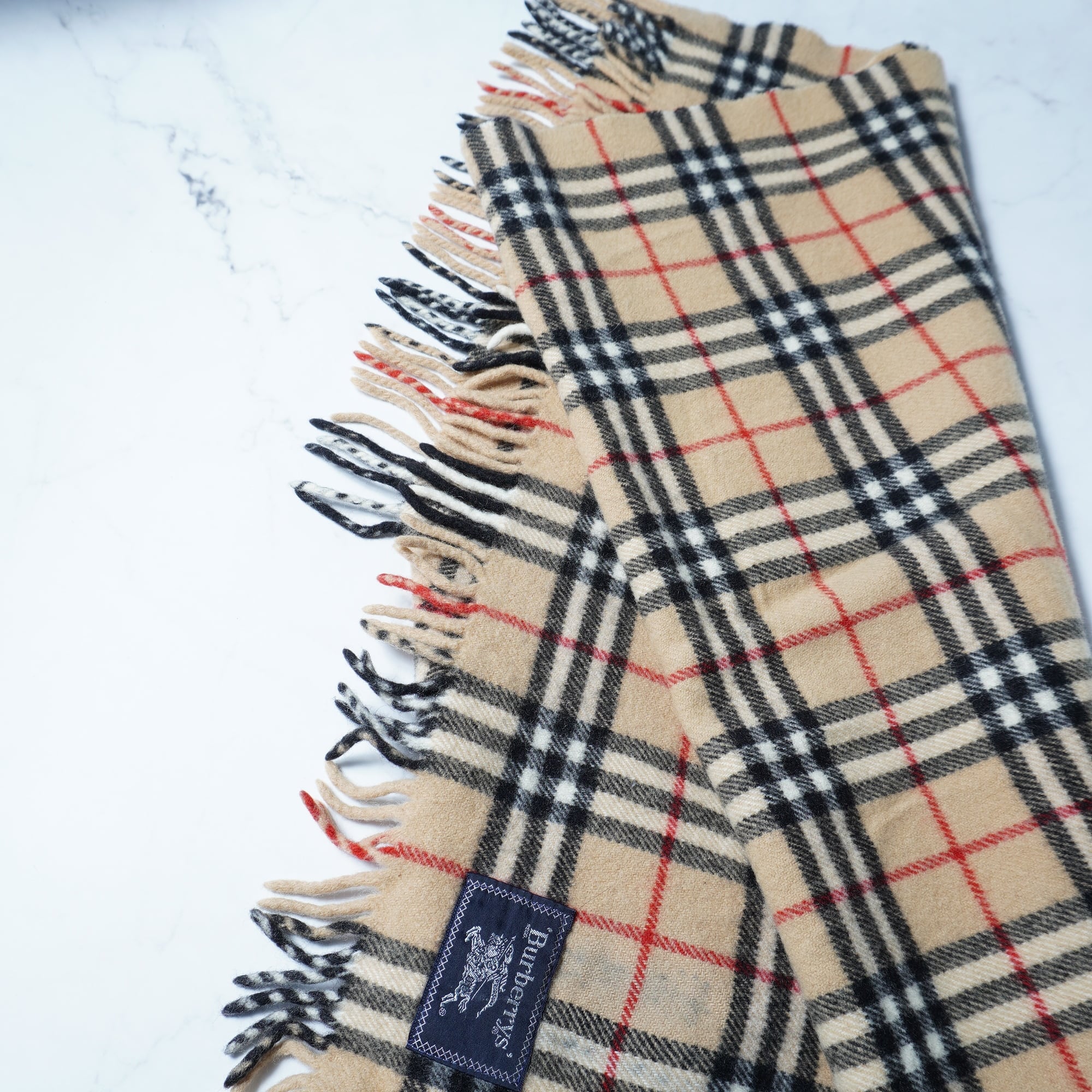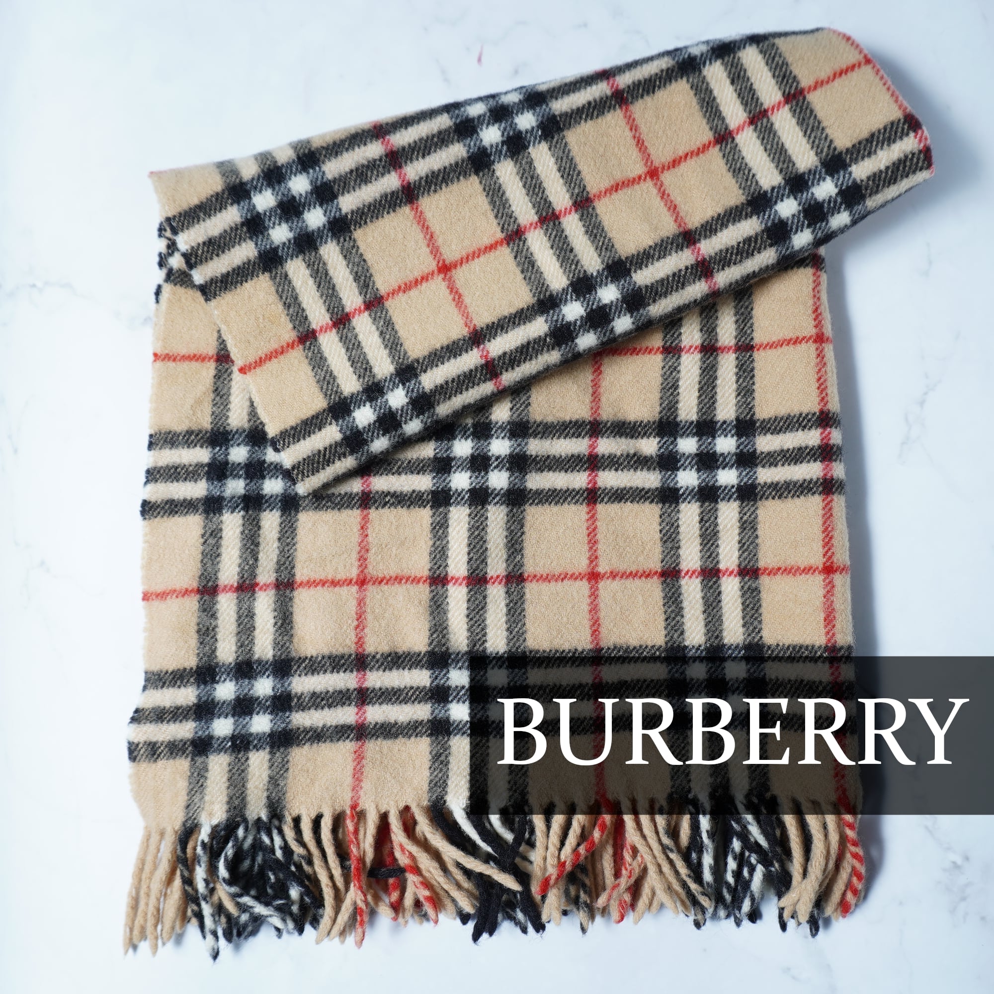 【BURBERRY】バーバリー ”ノバチェック”"WOOL100%"ホースロゴ刺繍ブランケット beige