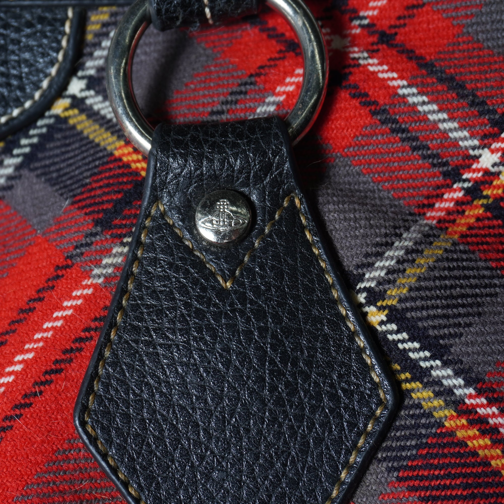 【Vivienne Westwood】ヴィヴィアンウエストウッド ”オーブロゴ” クロスチェックレザー切替トートバッグ red