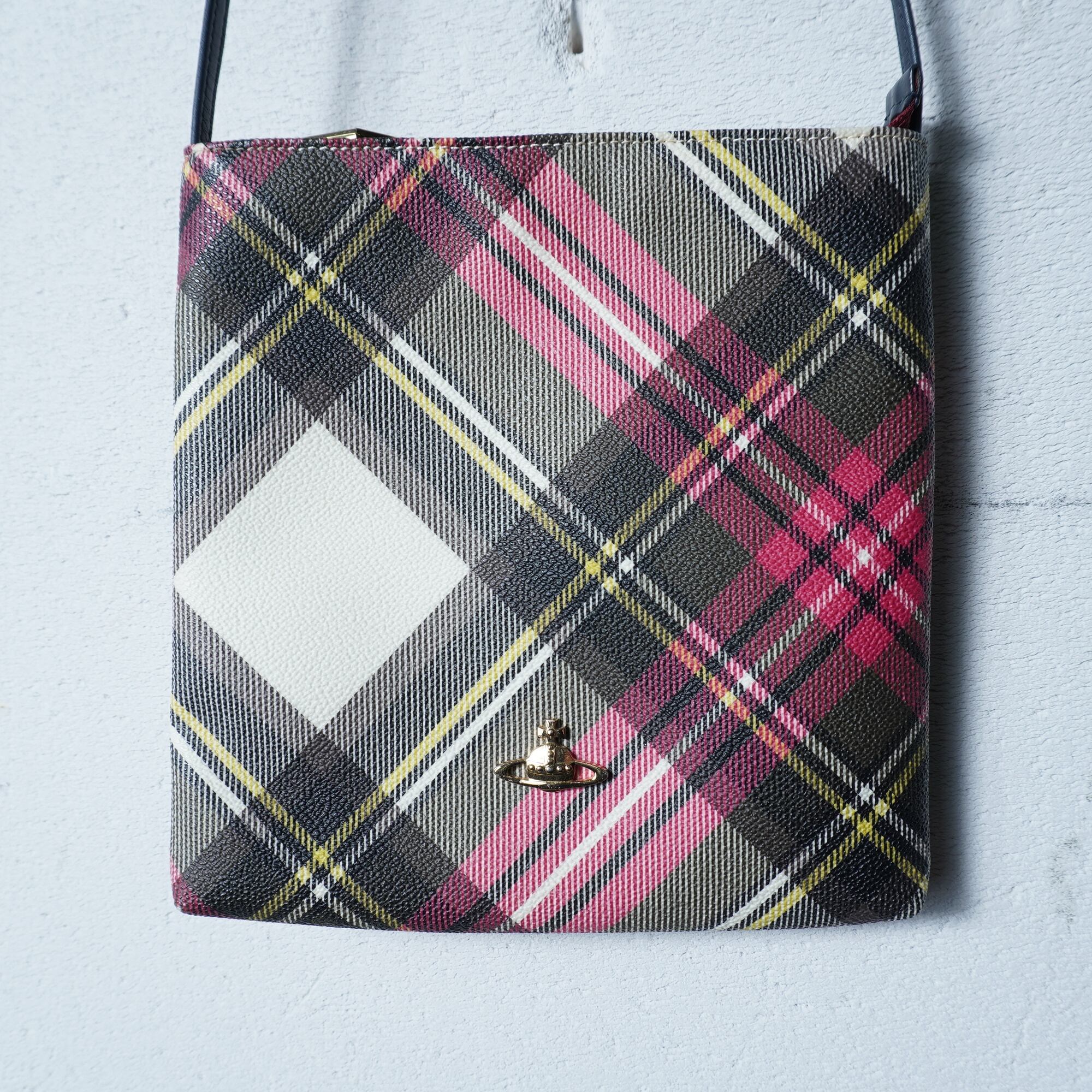 【Vivienne Westwood】ヴィヴィアンウエストウッド オーブロゴ クロスチェックレザーミニスクエアショルダーバッグ red&beige&yellow