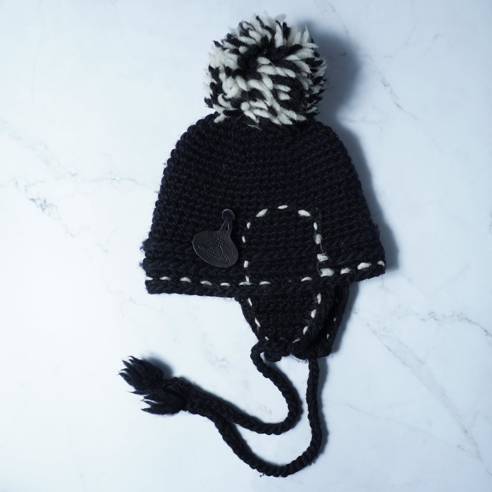 【Vivienne Westwood】ヴィヴィアンウエストウッド オーブロゴ ウール100%編み込みニット帽 black&white